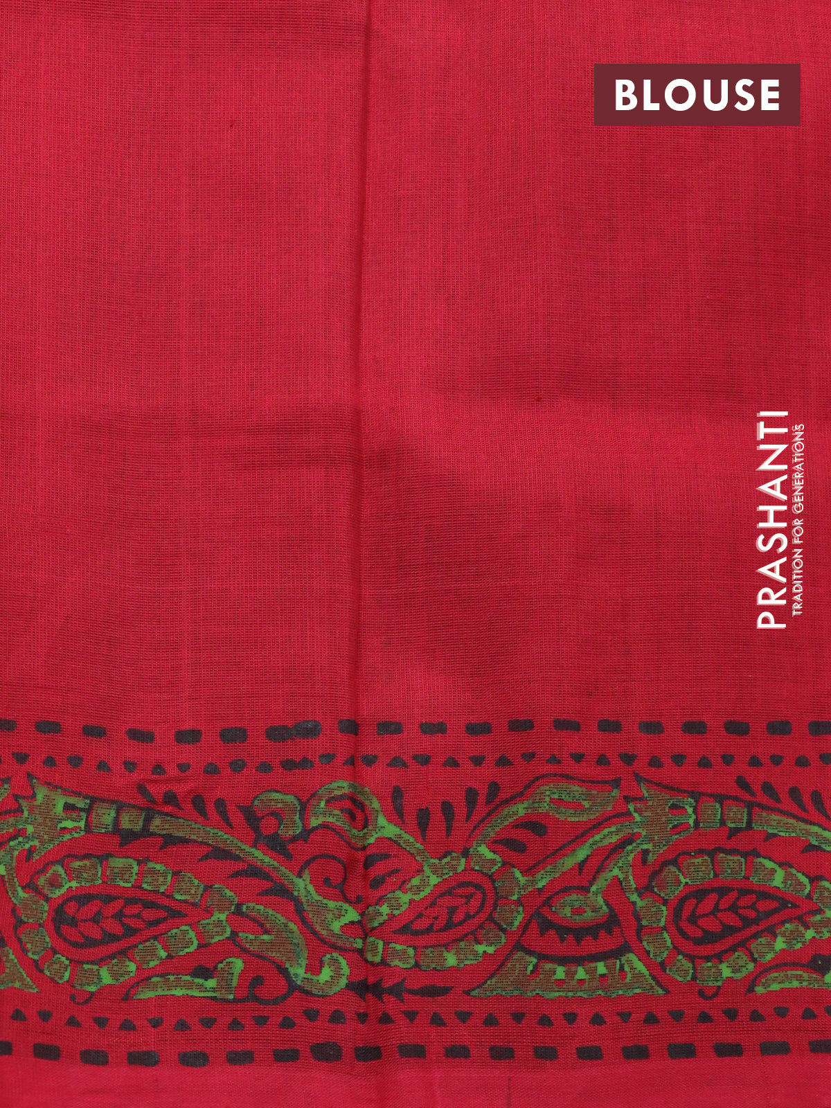 Silk cotton block printed saree light green and red with butta prints and printed border