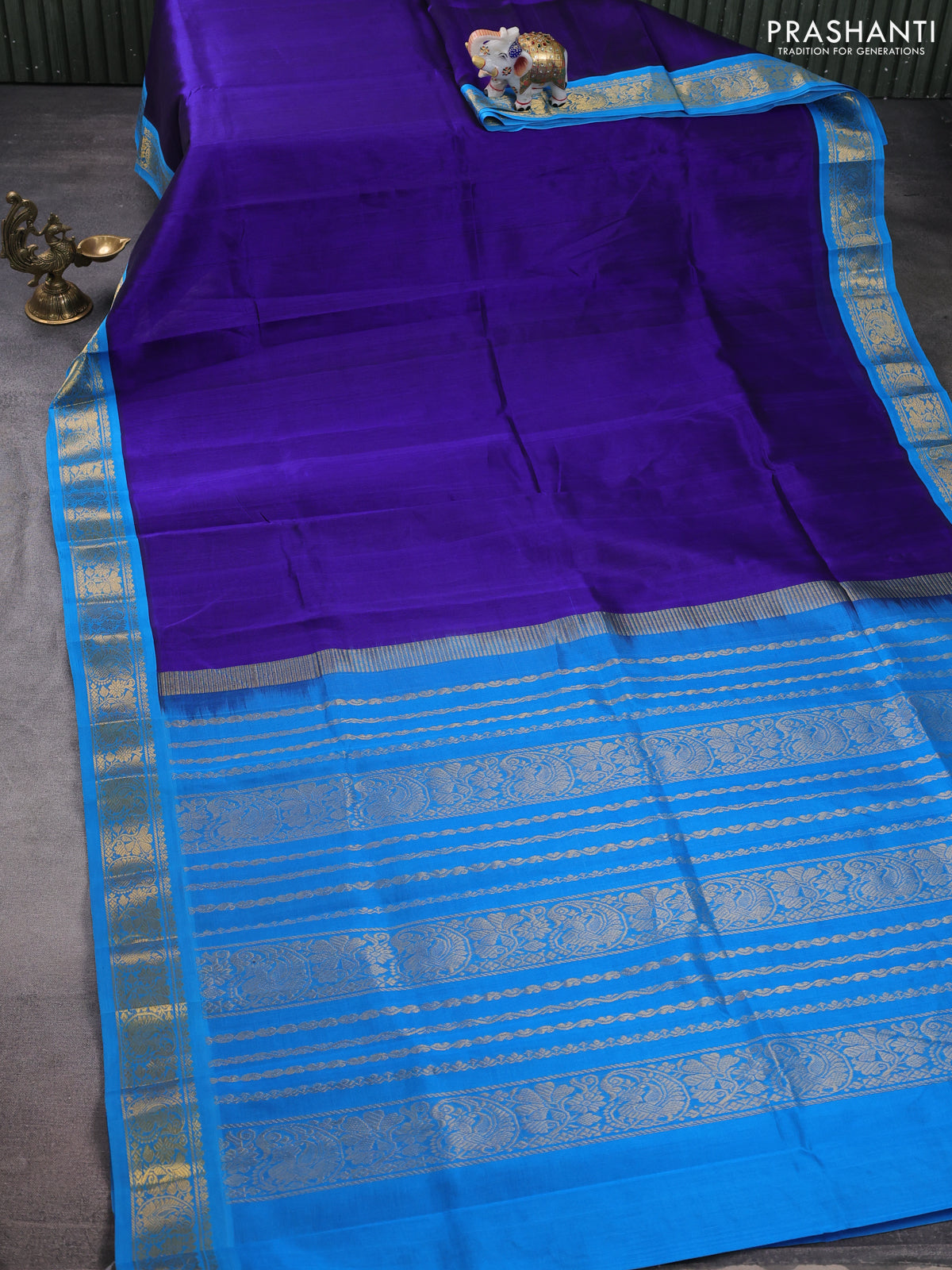 Silk cotton saree blue and cs blue with plain body and zari woven korvai border
