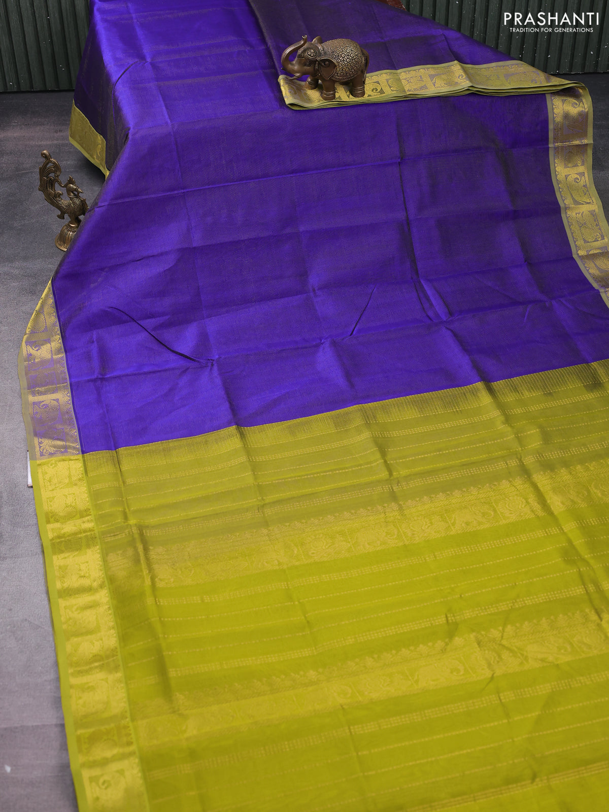 Silk cotton saree blue and lime green with allover vairosi pattern and zari woven border