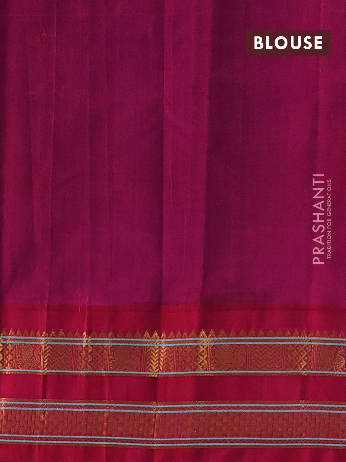 Silk cotton saree green and pink with allover pichwai prints and rettapet zari woven korvai border