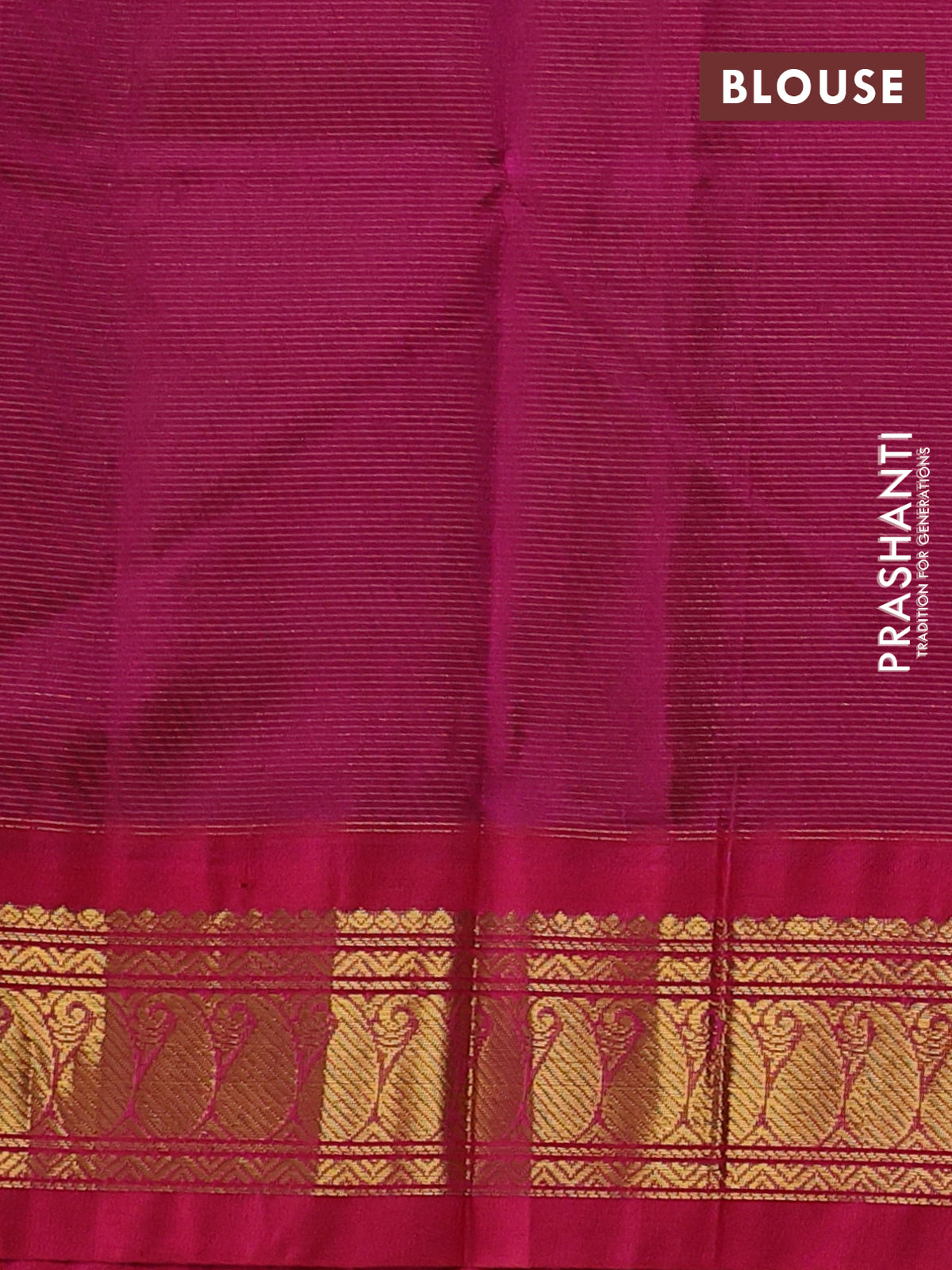 Silk cotton saree green and pink with allover vairaosi pattern and zari woven korvai border