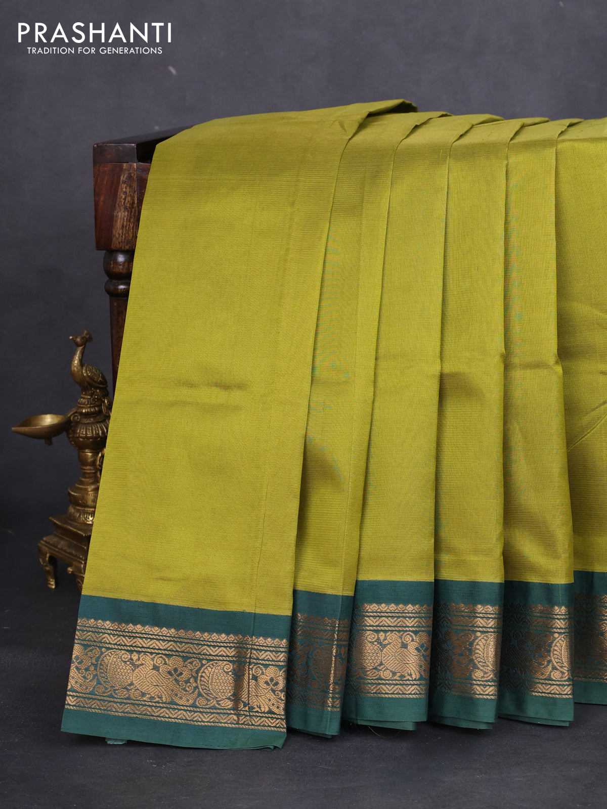 Silk cotton saree lime green and dark green with allover vairaosi pattern and zari woven korvai border