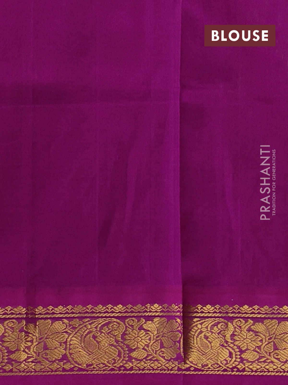 Silk cotton saree lime yellow and purple with allover kalamkari prints and zari woven korvai border