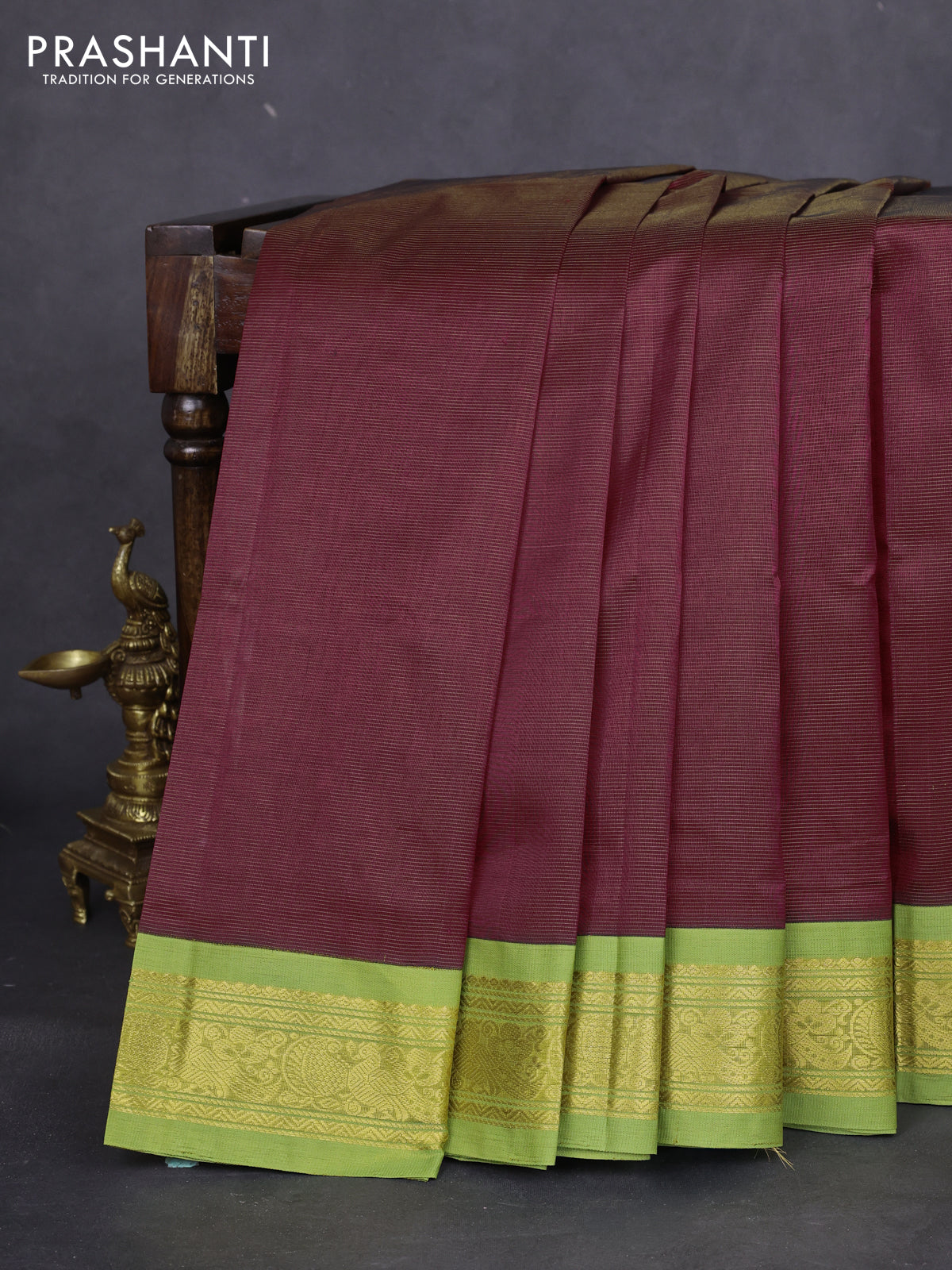 Silk cotton saree maroon and light green with allover vairaosi pattern and zari woven korvai border