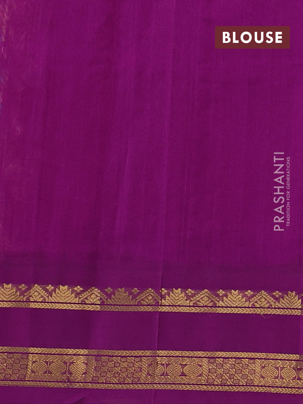 Silk cotton saree orange and purple with allover kalamkari prints & zari buttas and rettapet zari woven korvai border