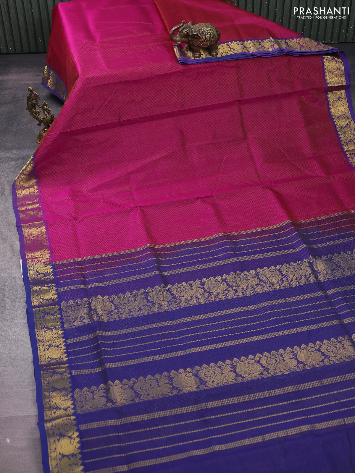 Silk cotton saree pink and blue with allover vairaosi pattern and zari woven border
