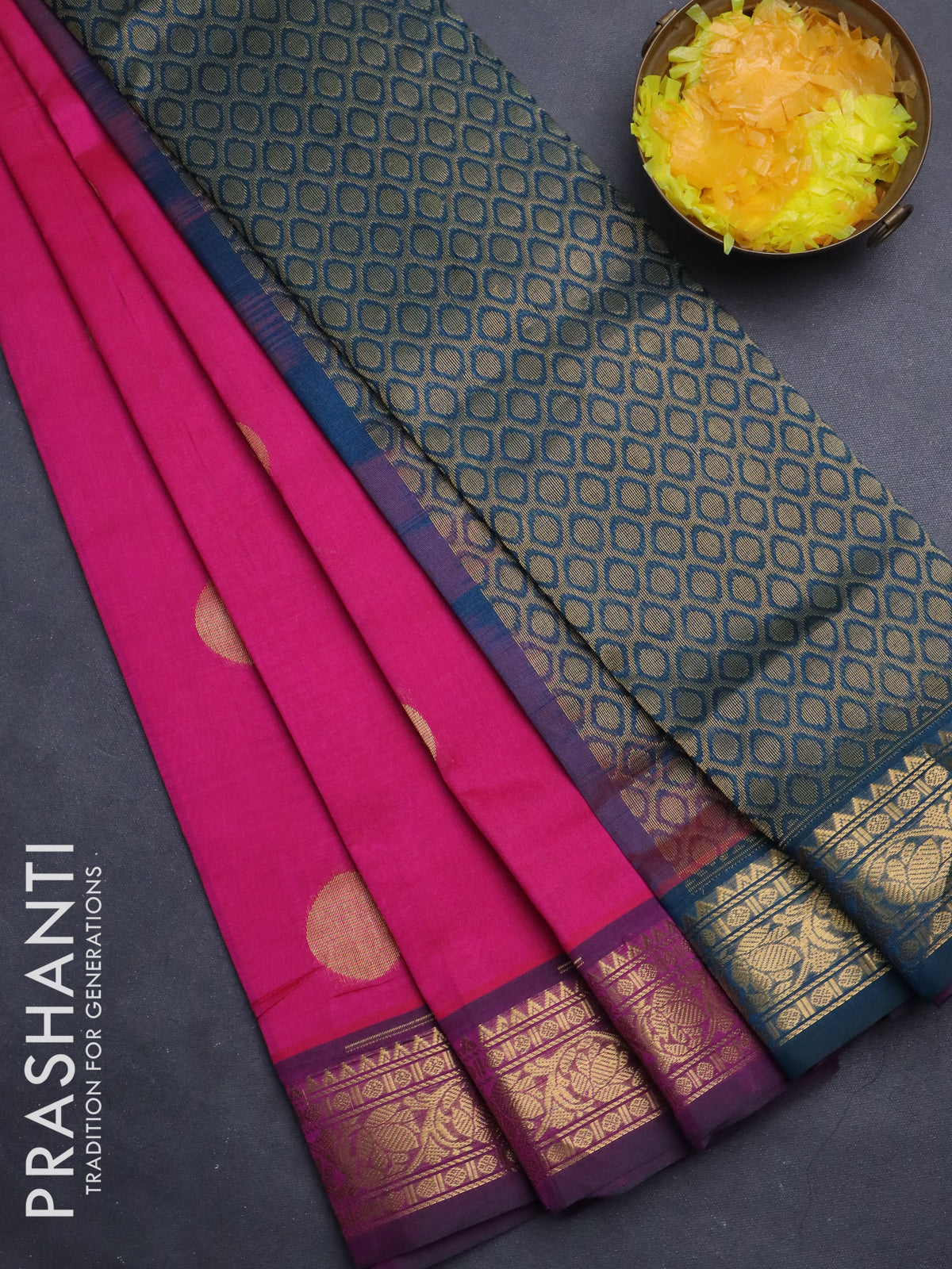 Silk cotton saree pink and peacock blue with zari woven buttas and zari woven border