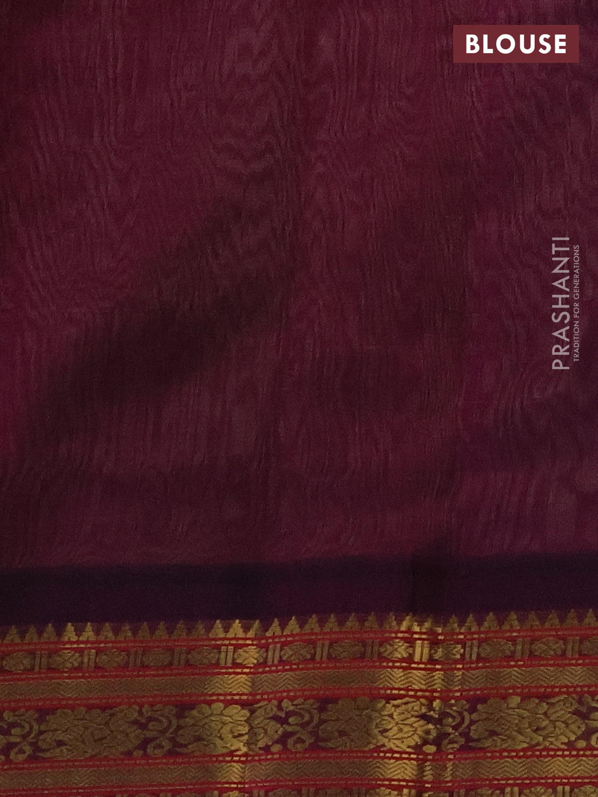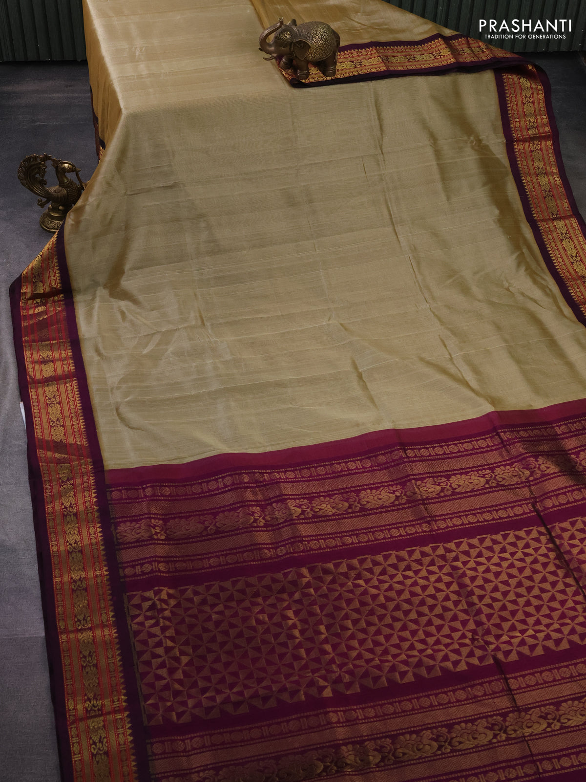 Silk cotton saree sandal and purple with plain body and zari woven korvai border