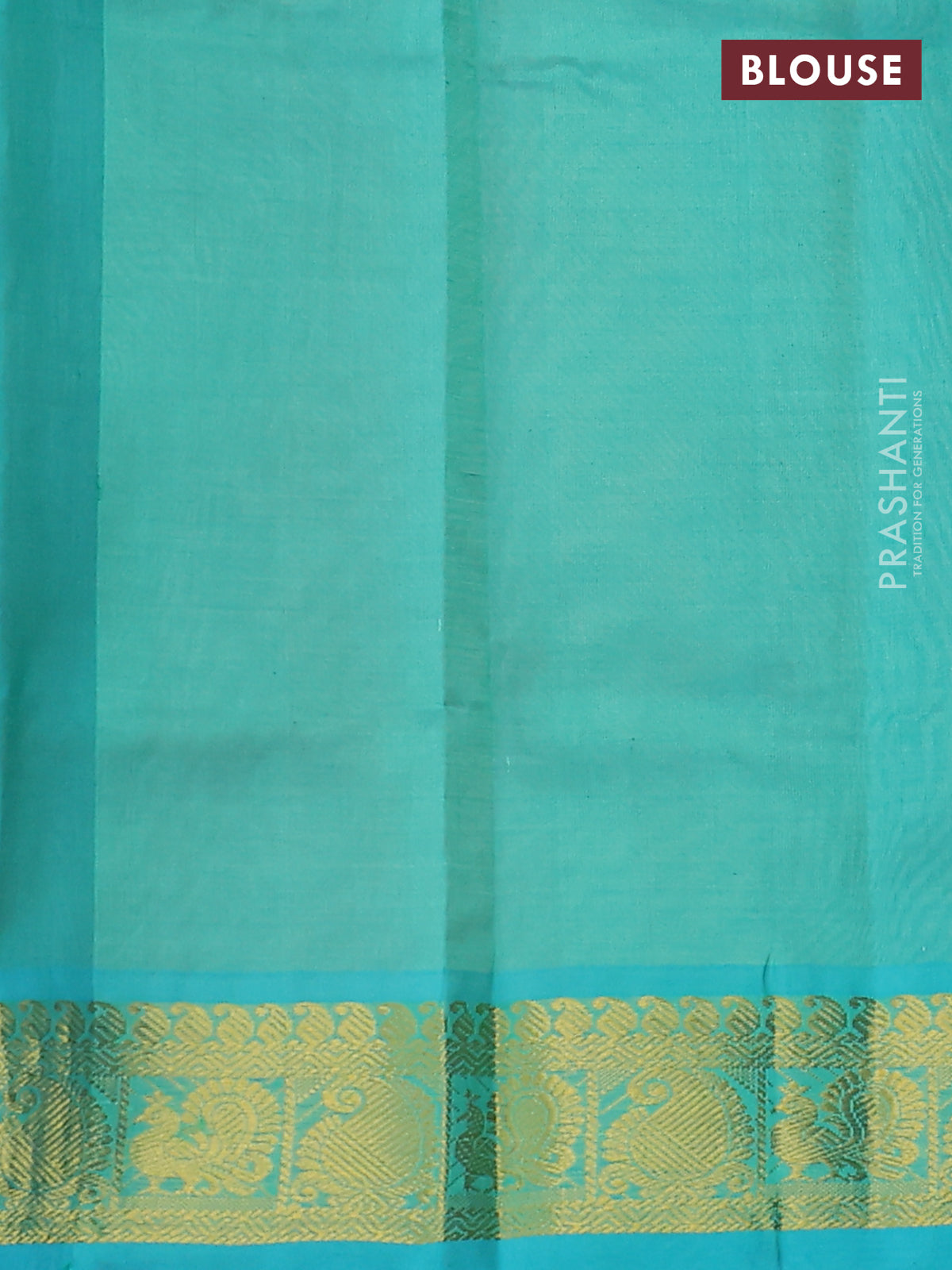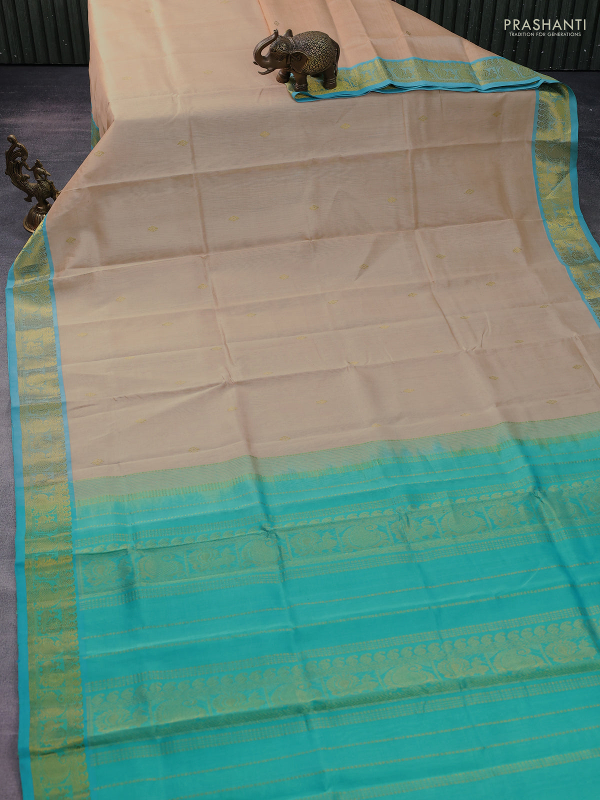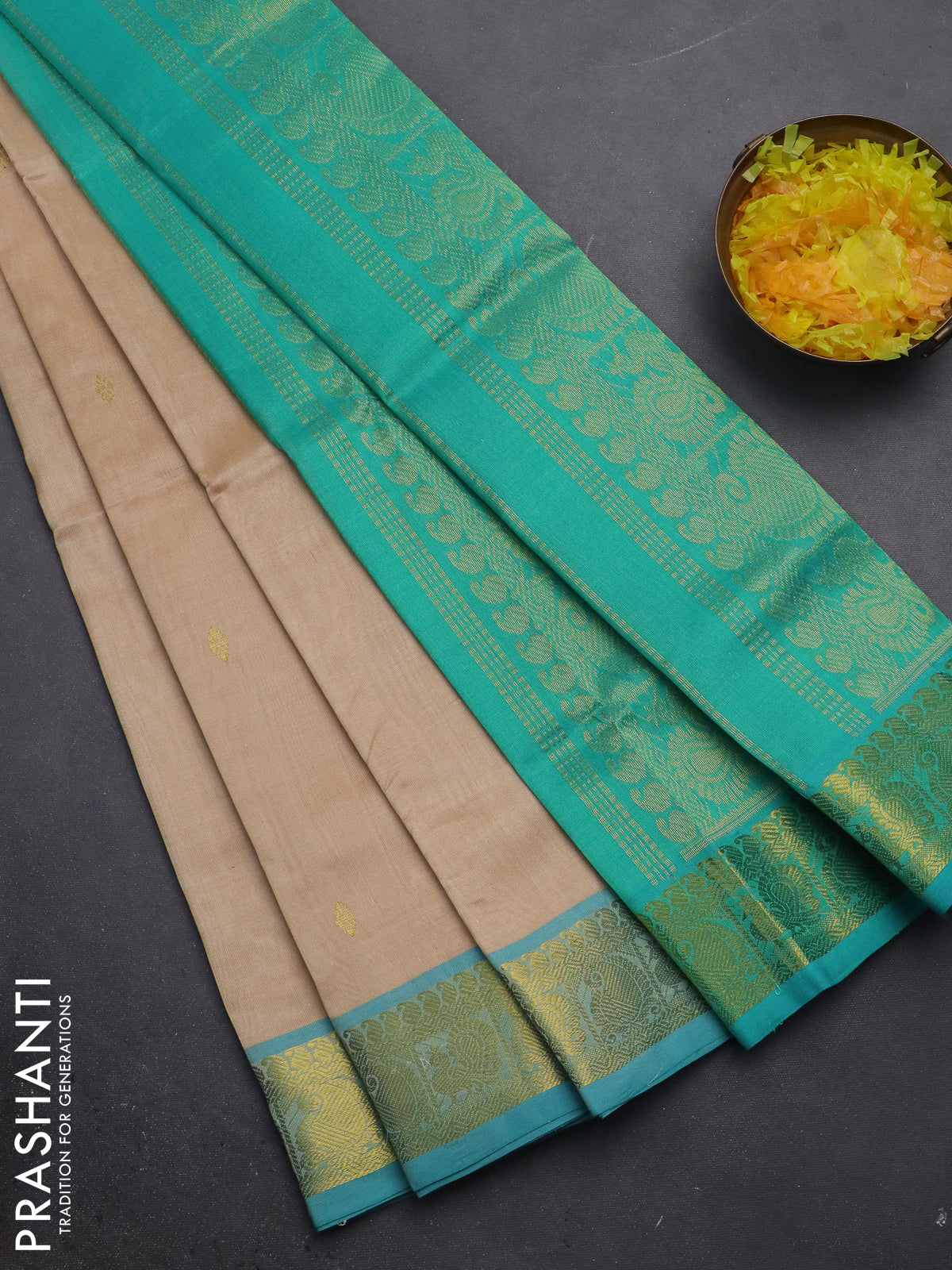 Silk cotton saree sandal and teal green with zari woven buttas and zari woven border