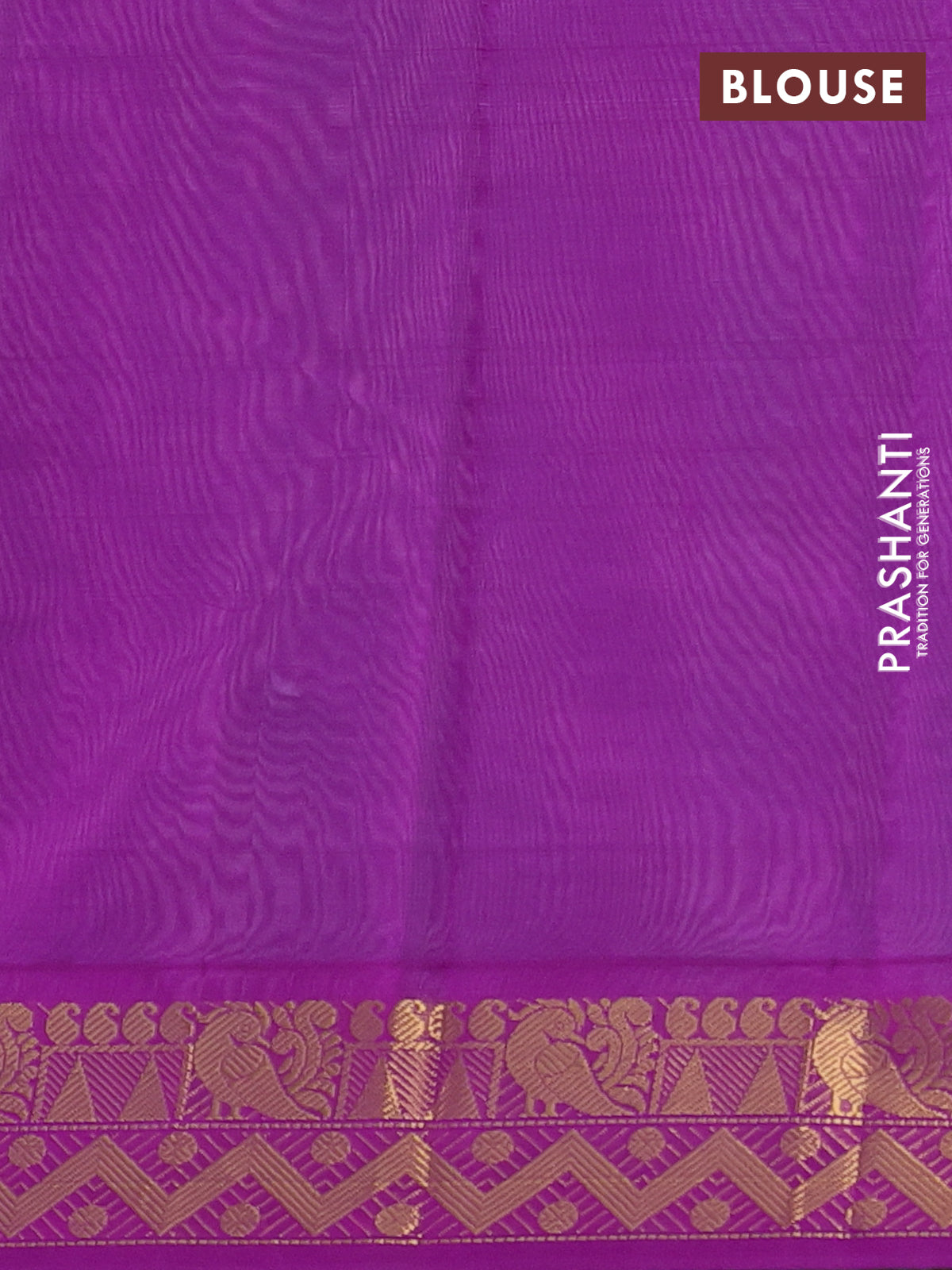Silk cotton saree teal shade and purple with plain body and zari woven border