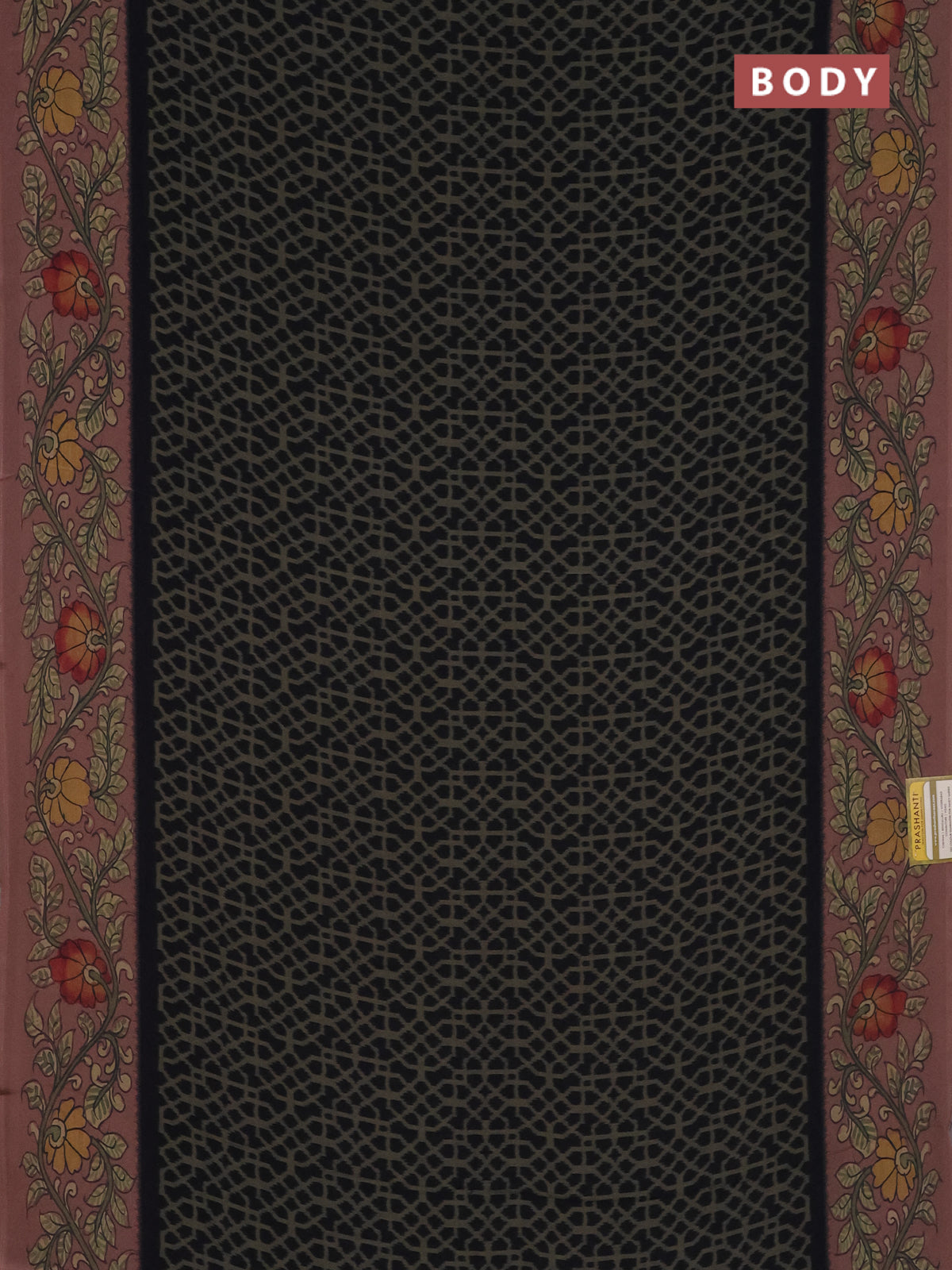 Semi crepe saree beige black and pastel brown with allover prints and printed border