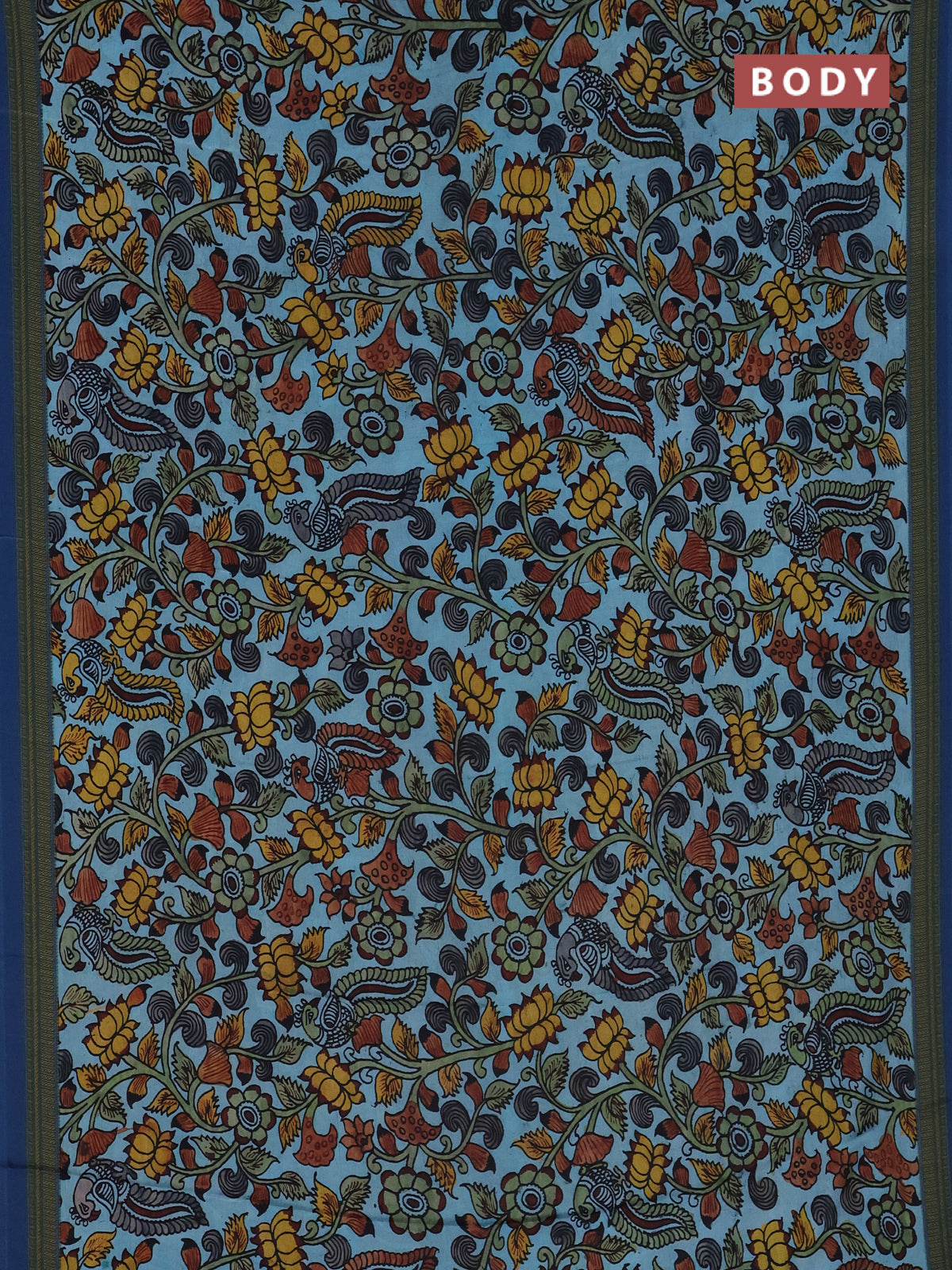 Semi crepe saree blue shade with kalamkari prints and printed border