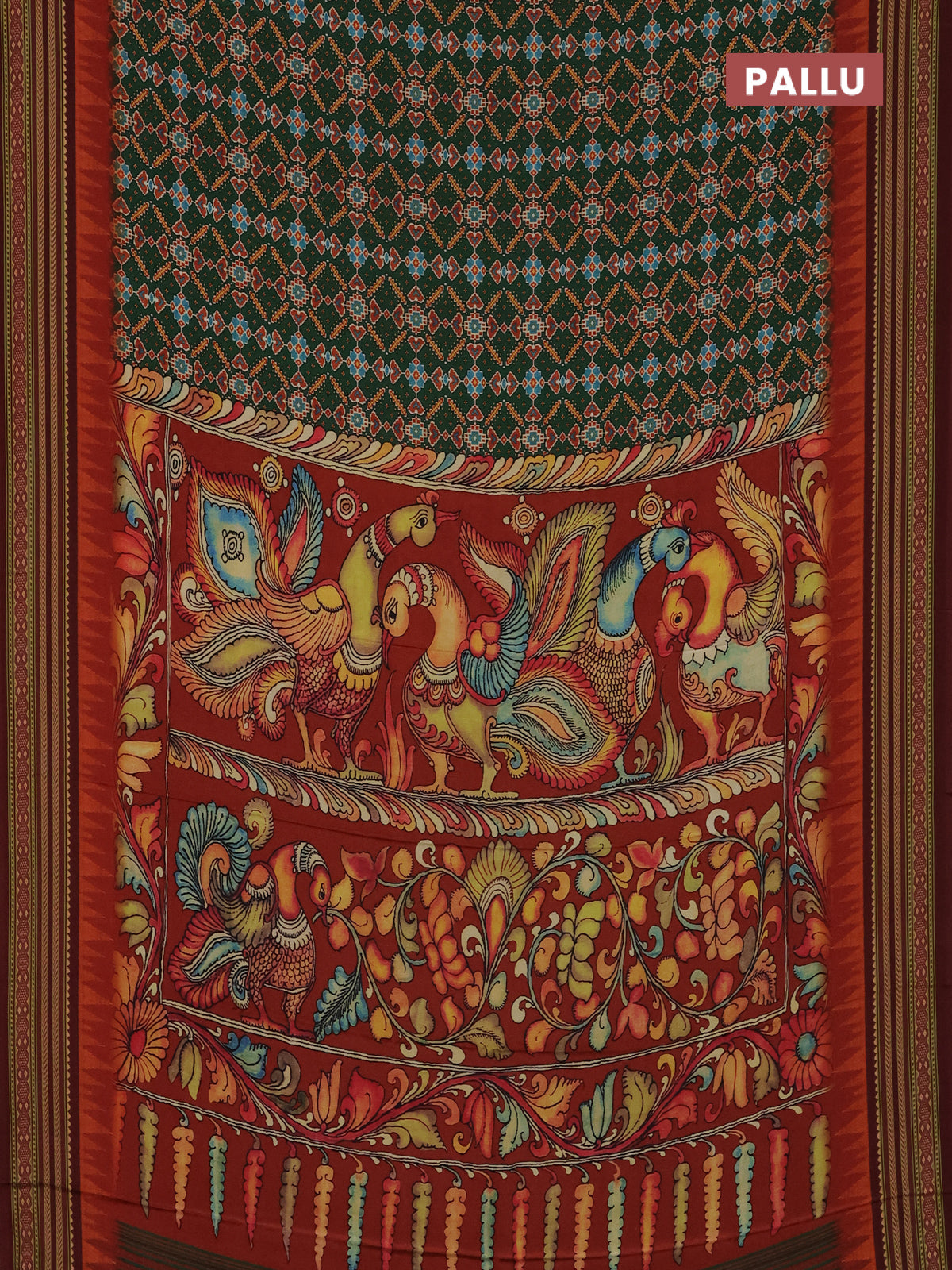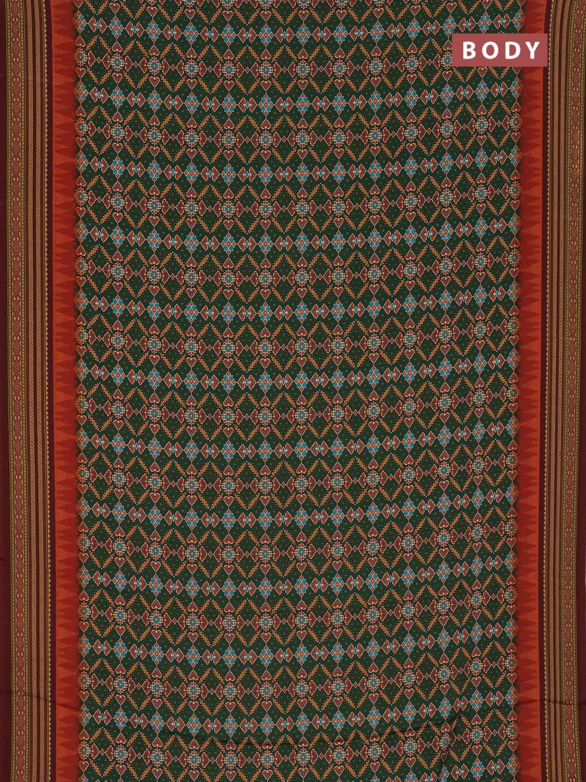 Semi crepe saree green and maroon with allover ikat prints and printed border