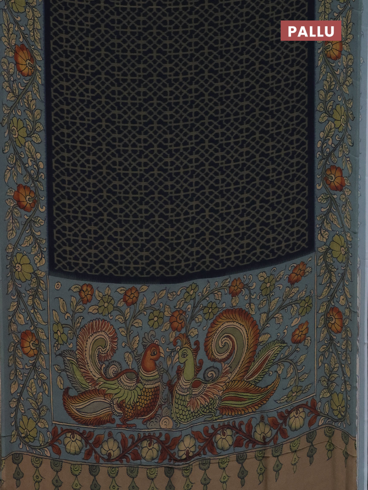 Semi crepe saree grey blue and grey shade with allover prints and printed border