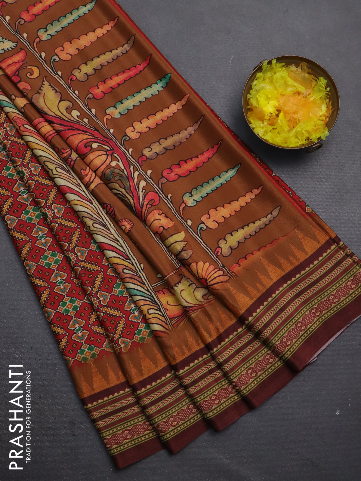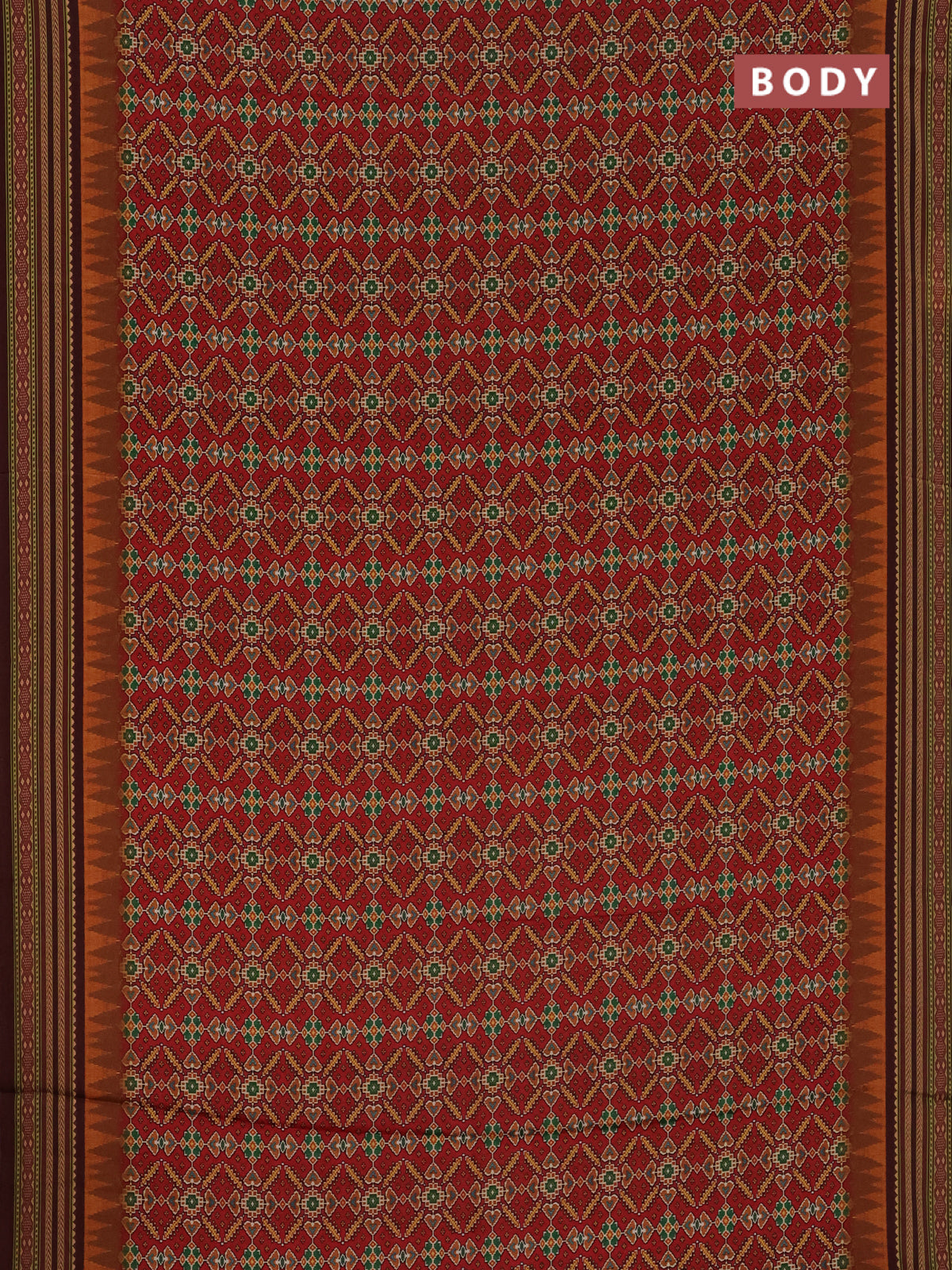 Semi crepe saree maroon and deep maroon with allover ikat prints and printed border