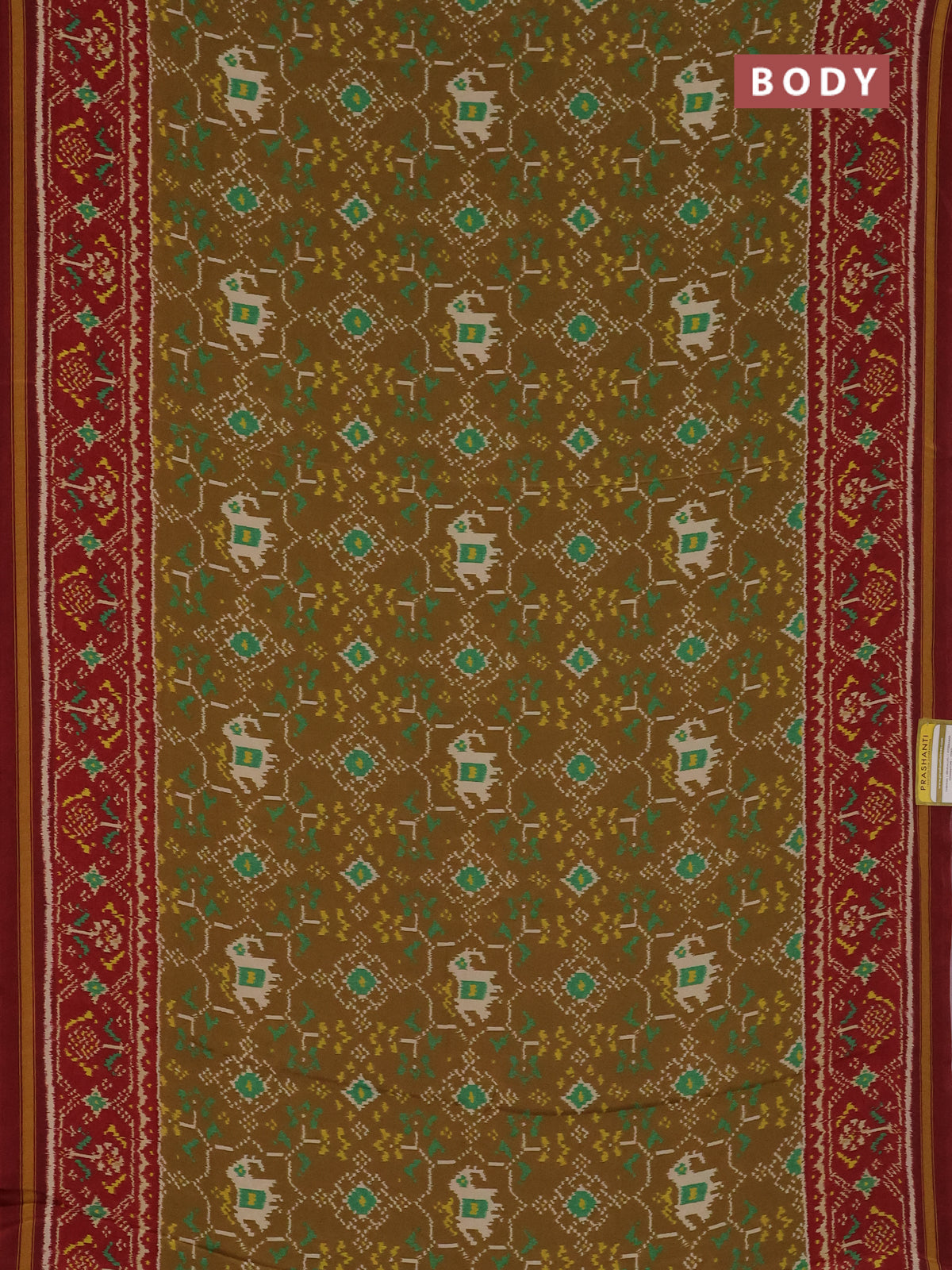 Semi crepe saree sandal and maroon with allover ikat prints and printed border