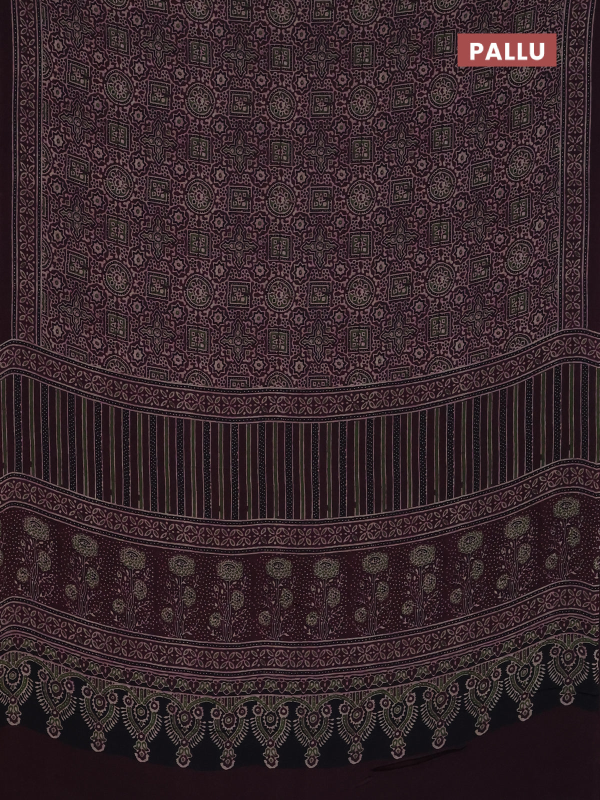 Semi crepe saree wine shade with allover ajrakh prints and printed border