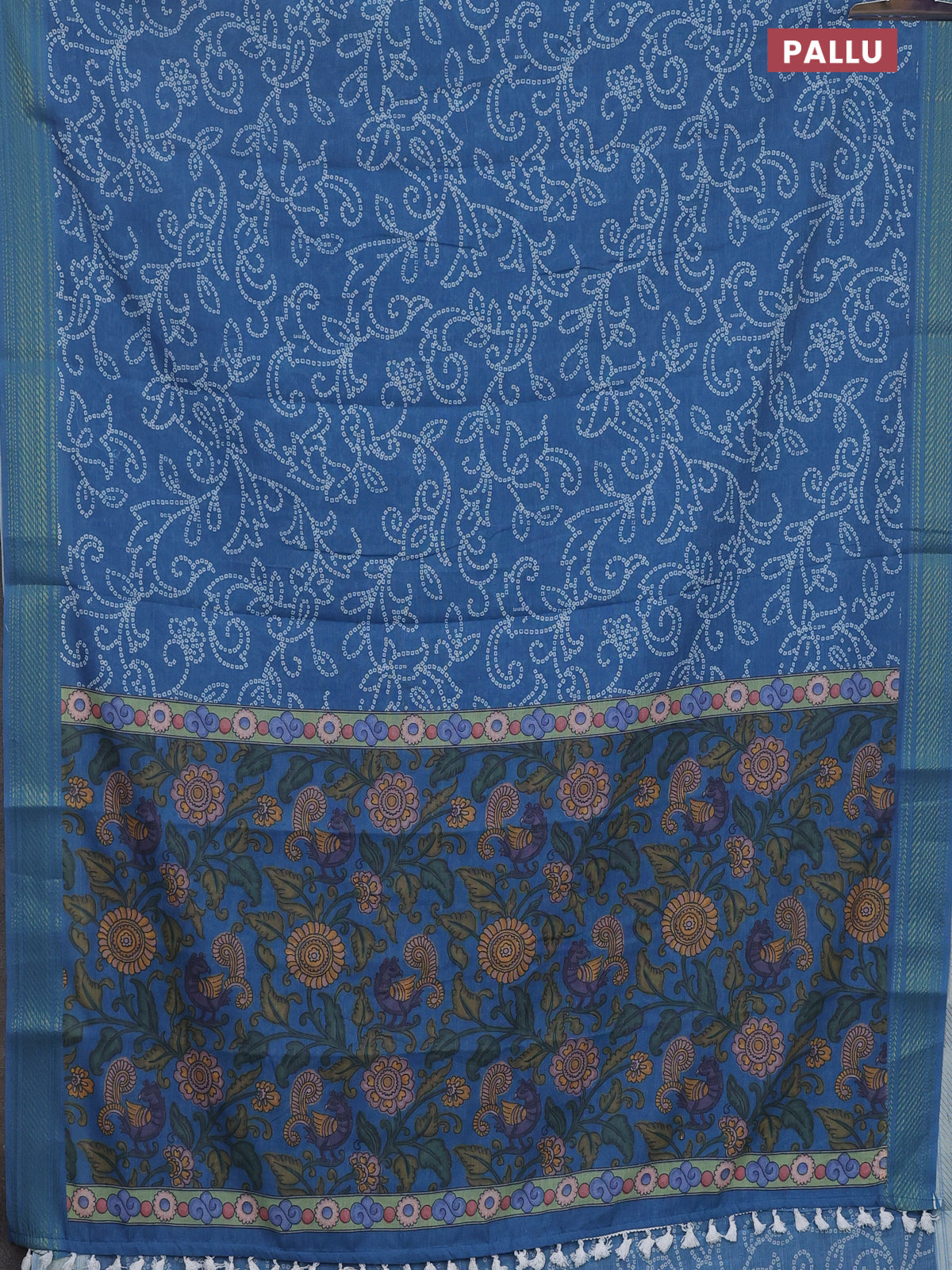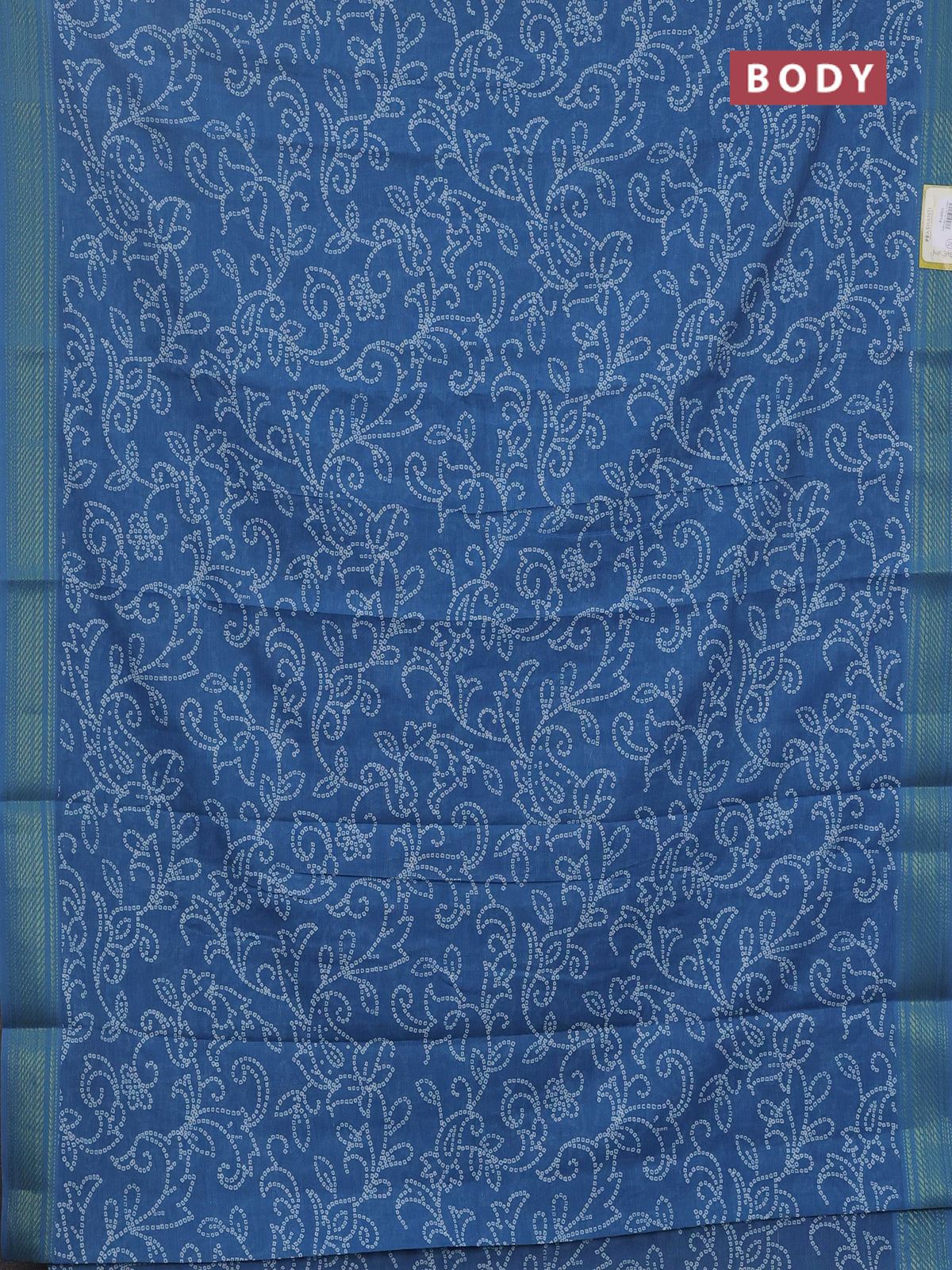 Spun cotton saree blue shade with allover bandhani prints and zari woven border