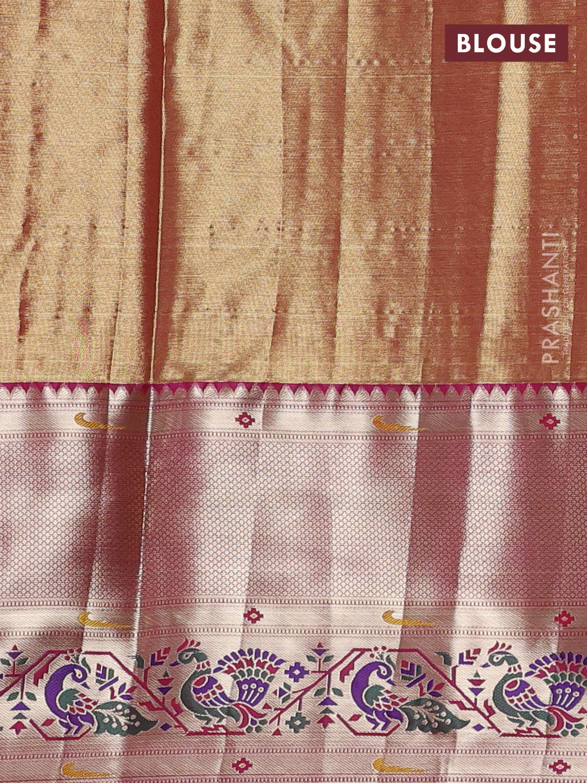 Tissue paithani silk saree dual shade of green and magenta pink with allover zari woven brocade weaves and long zari woven paithani style border