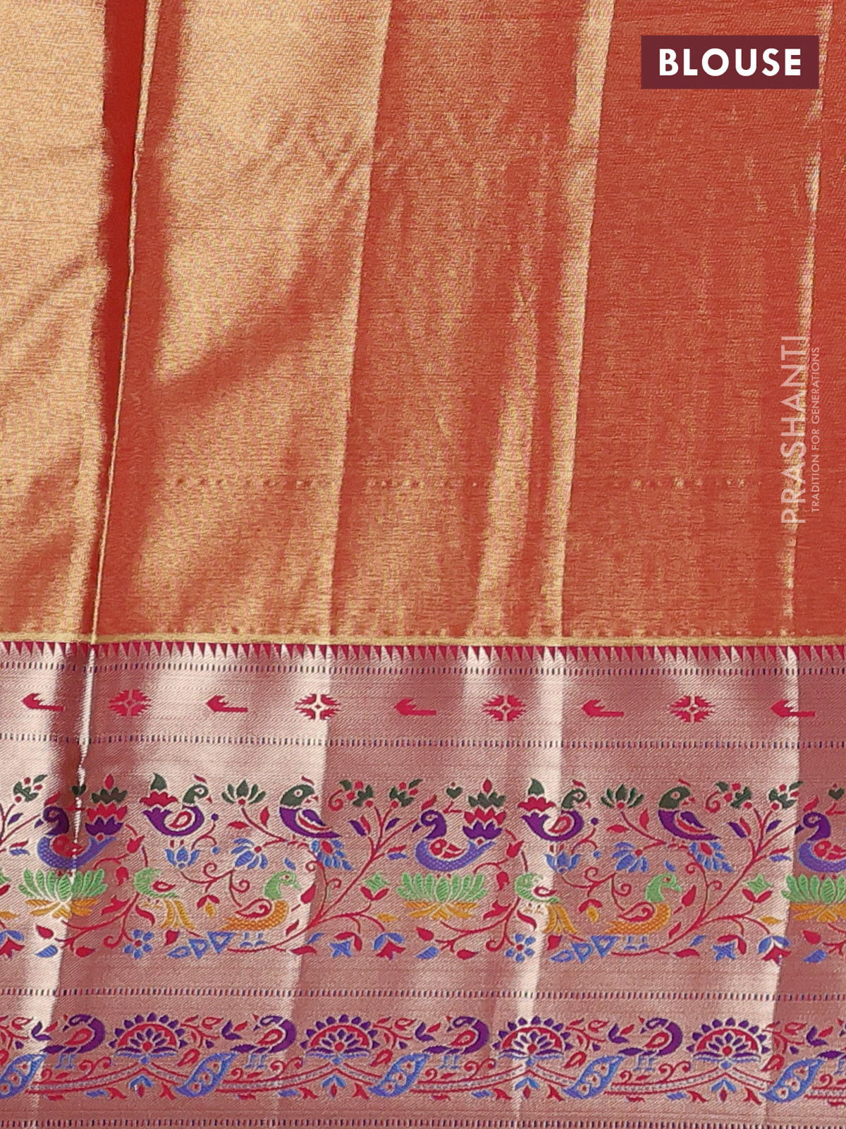 Tissue paithani silk saree mustard yellow and pink with allover silver zari woven brocade weaves and zari woven paithani style border
