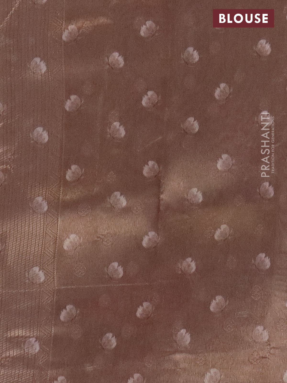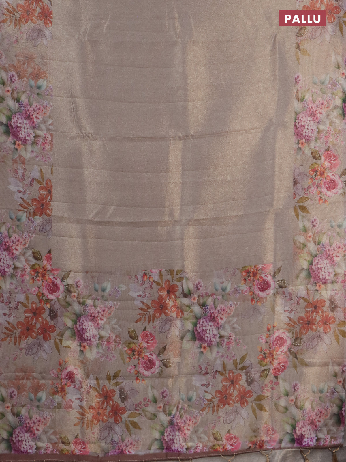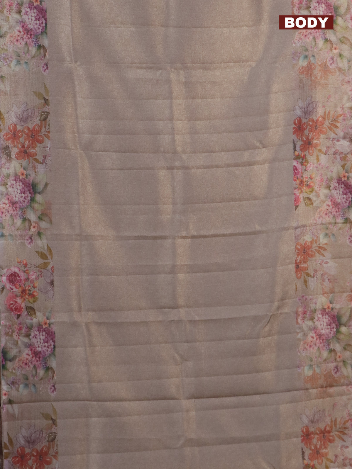Tissue saree beige with allover zari weaves and floral digital printed border