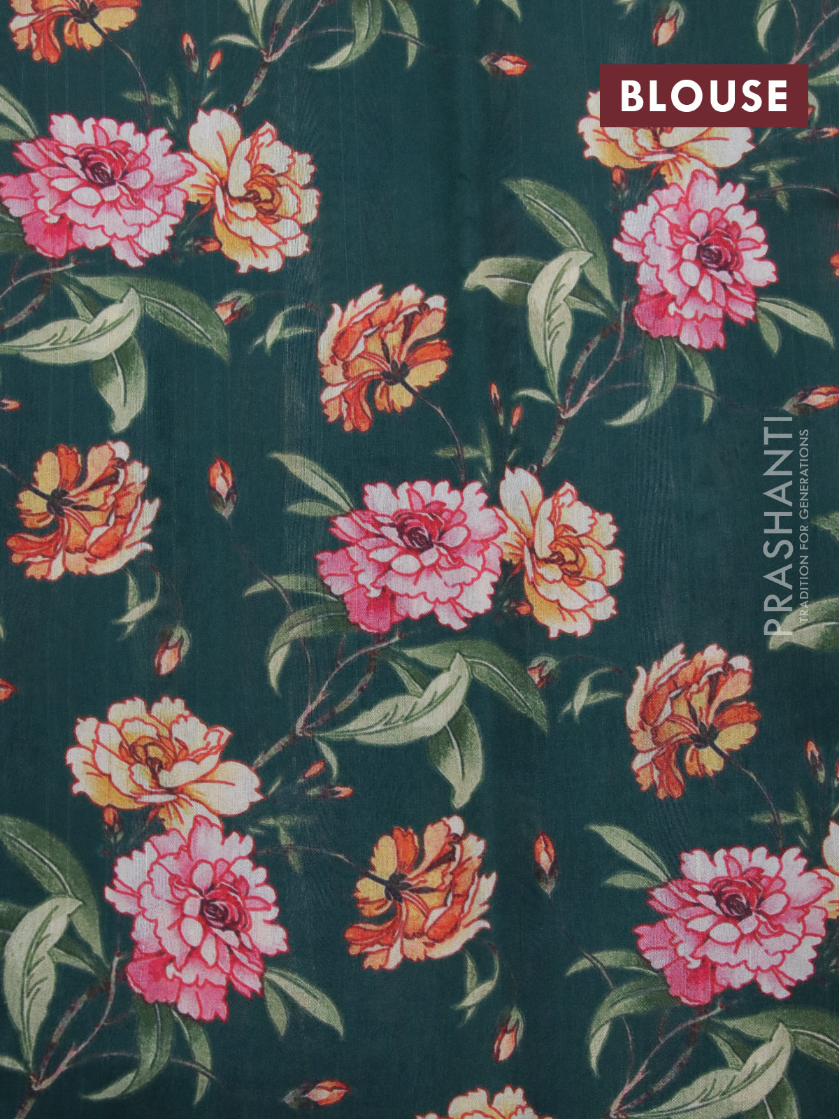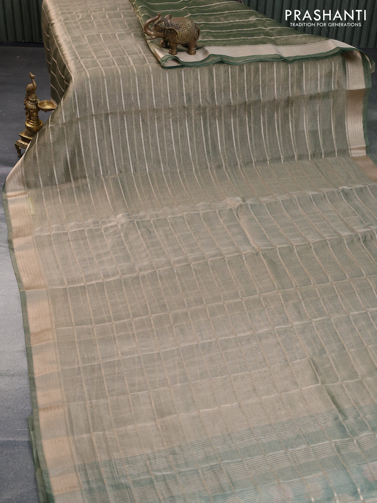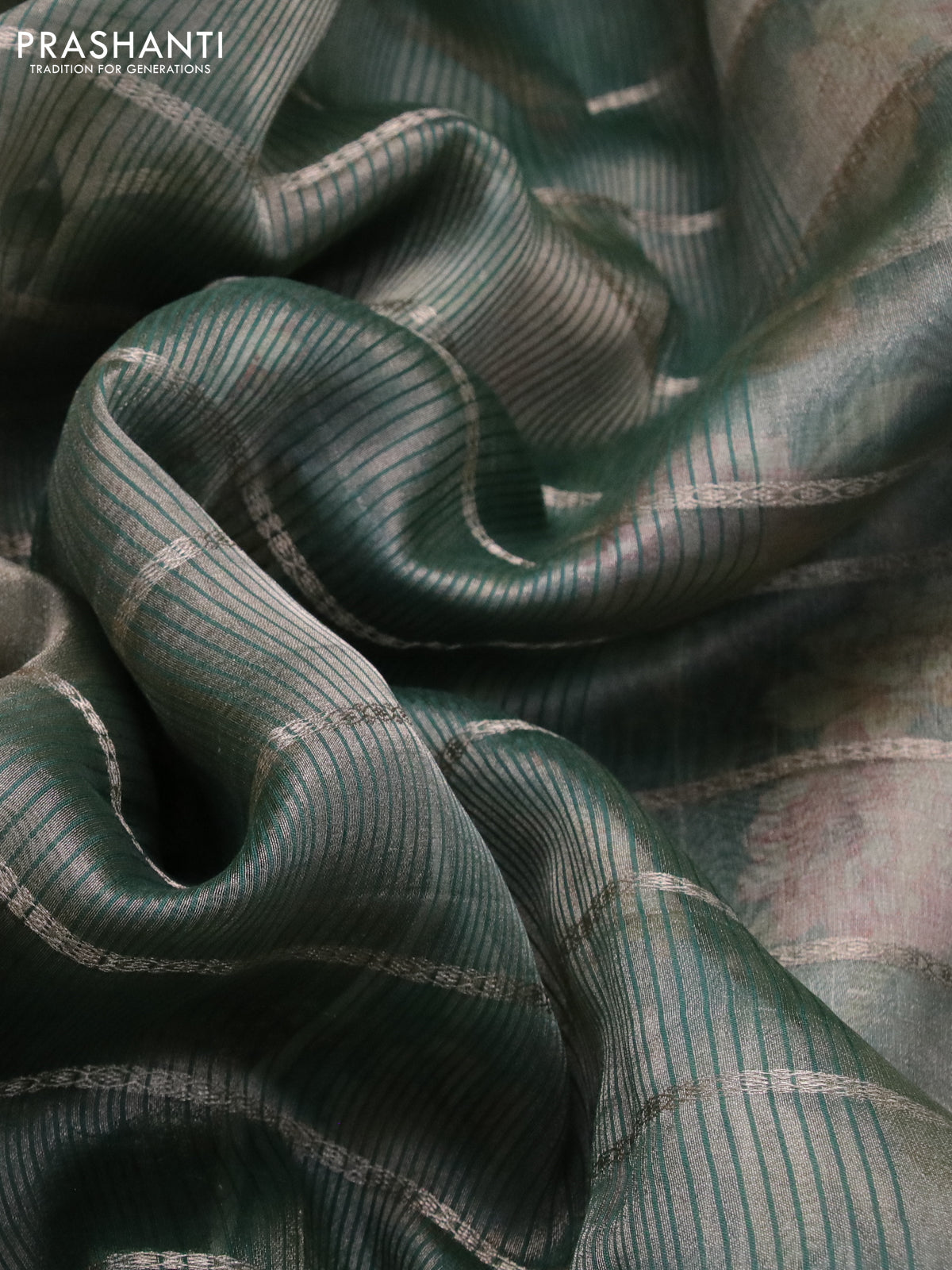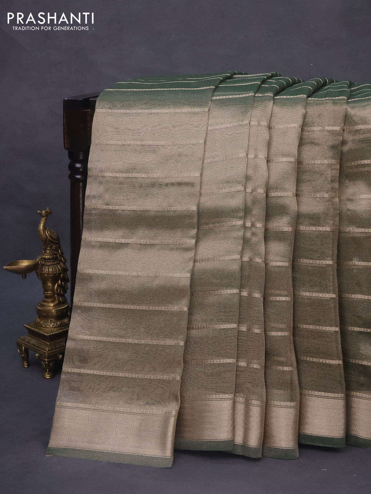 Tissue saree dual shade of green and green with allover zari woven stripes pattern and zari woven border - printed blouse