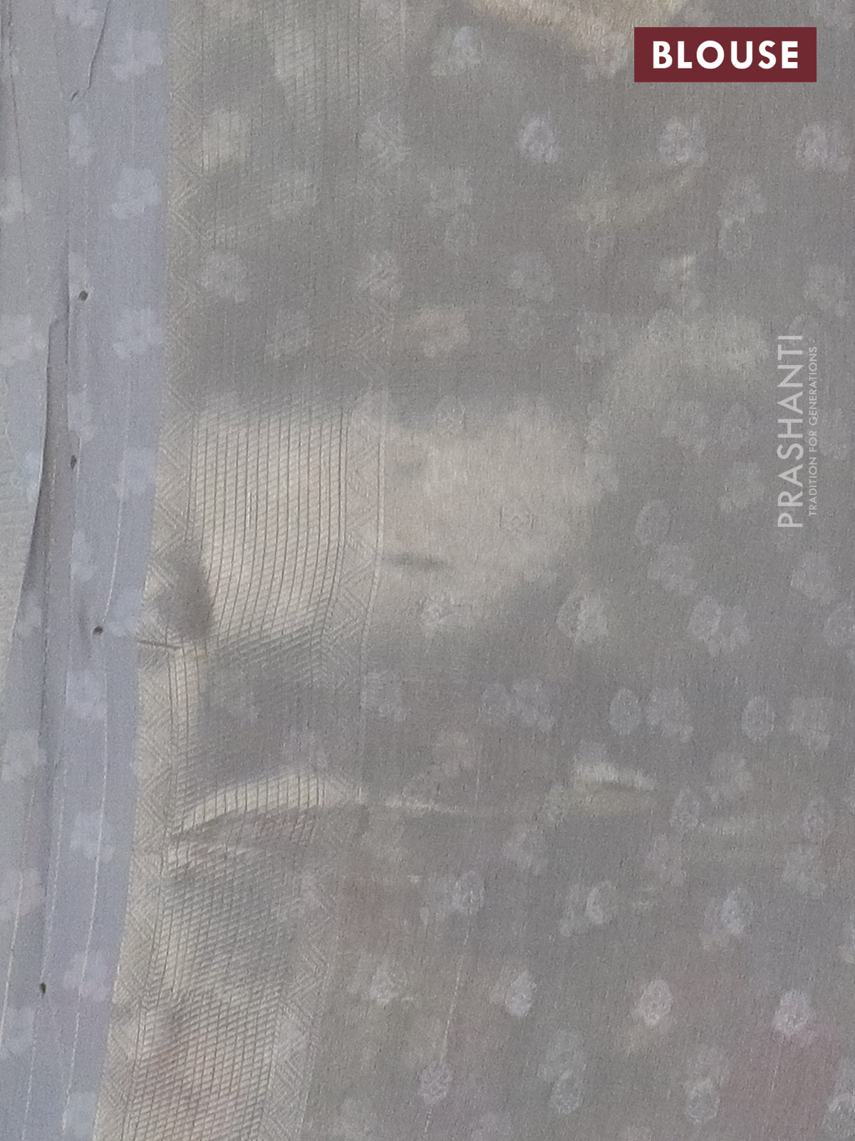 Tissue saree grey shade with allover zari weaves and floral digital printed border