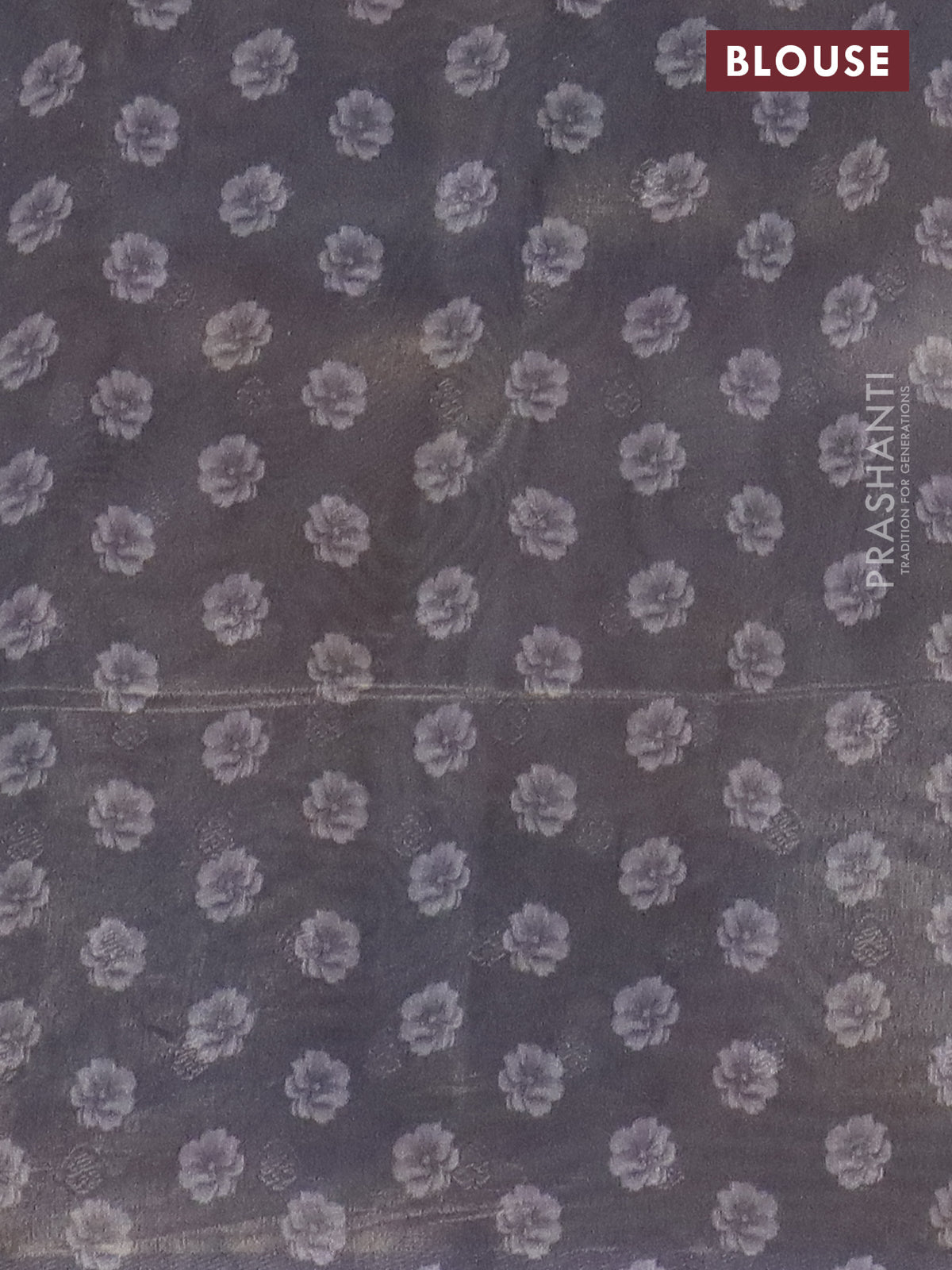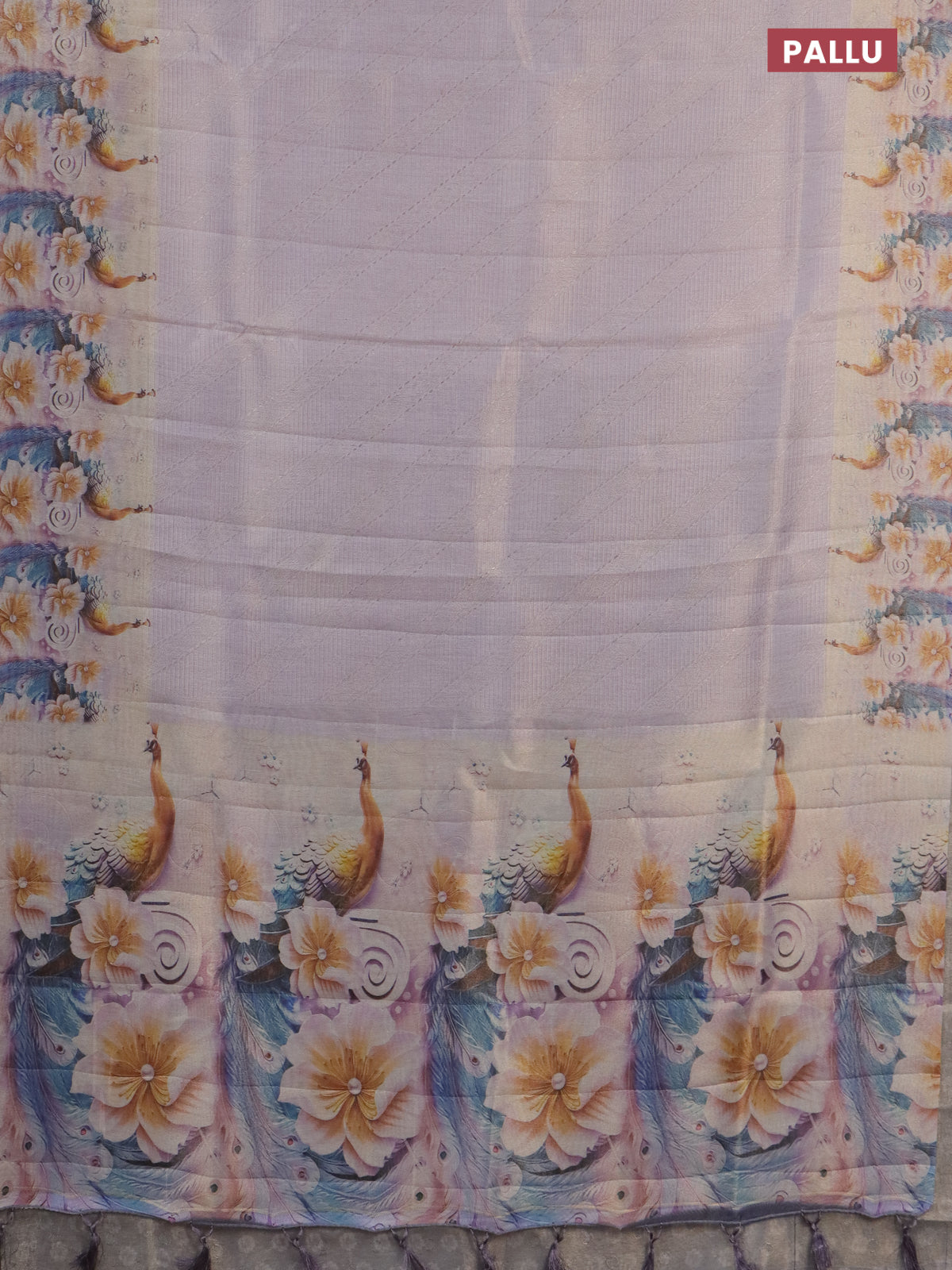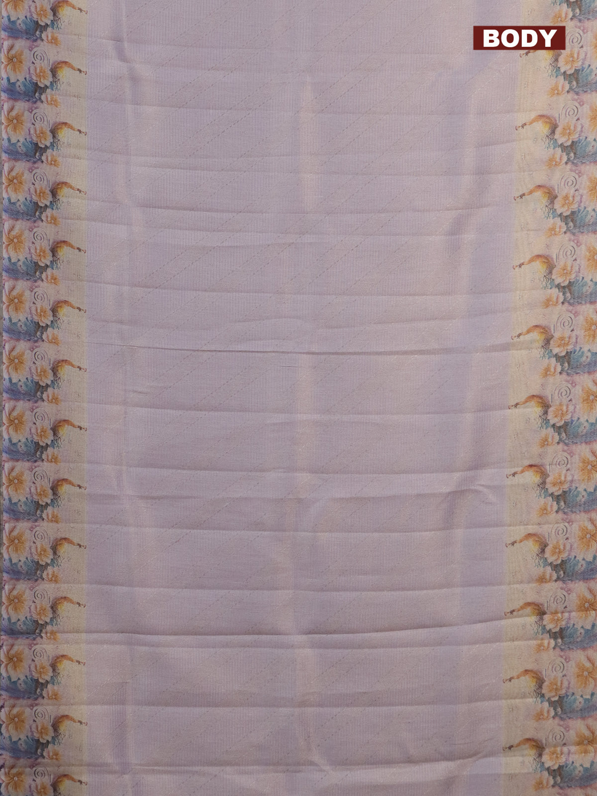 Tissue saree pastel lavender with allover zari weaves and floral digital printed border
