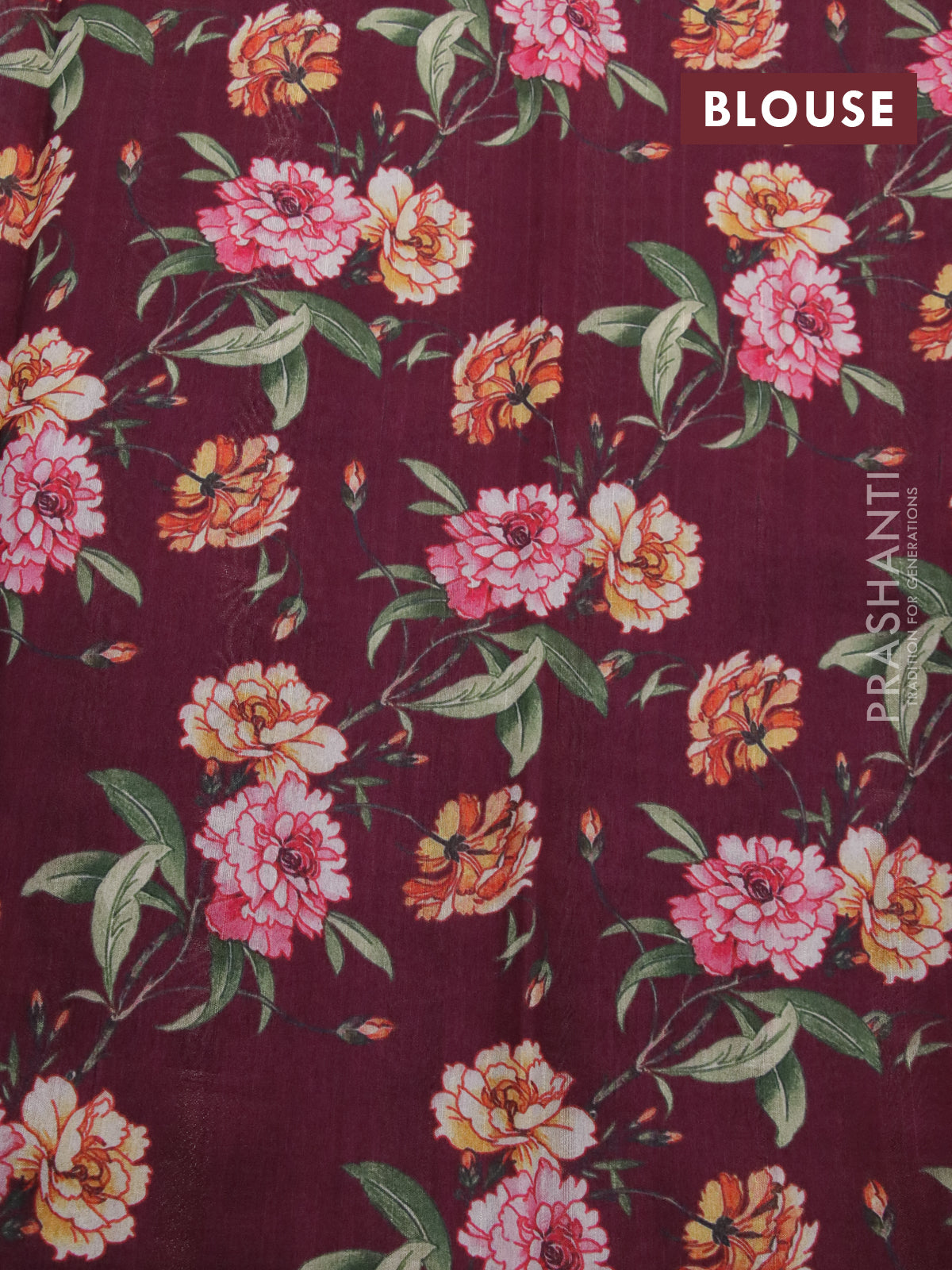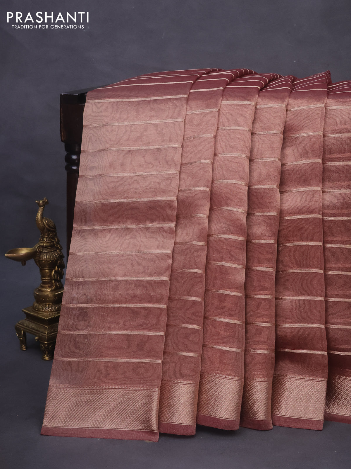 Tissue saree pastel maroon shade and deep maroon with allover zari woven stripes pattern and zari woven border - printed blouse