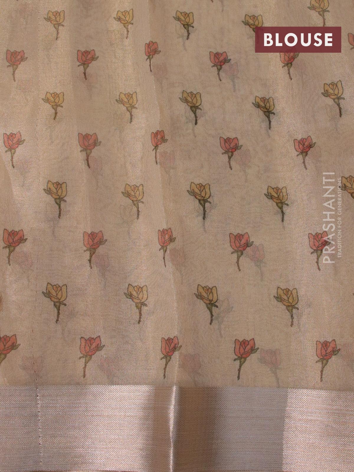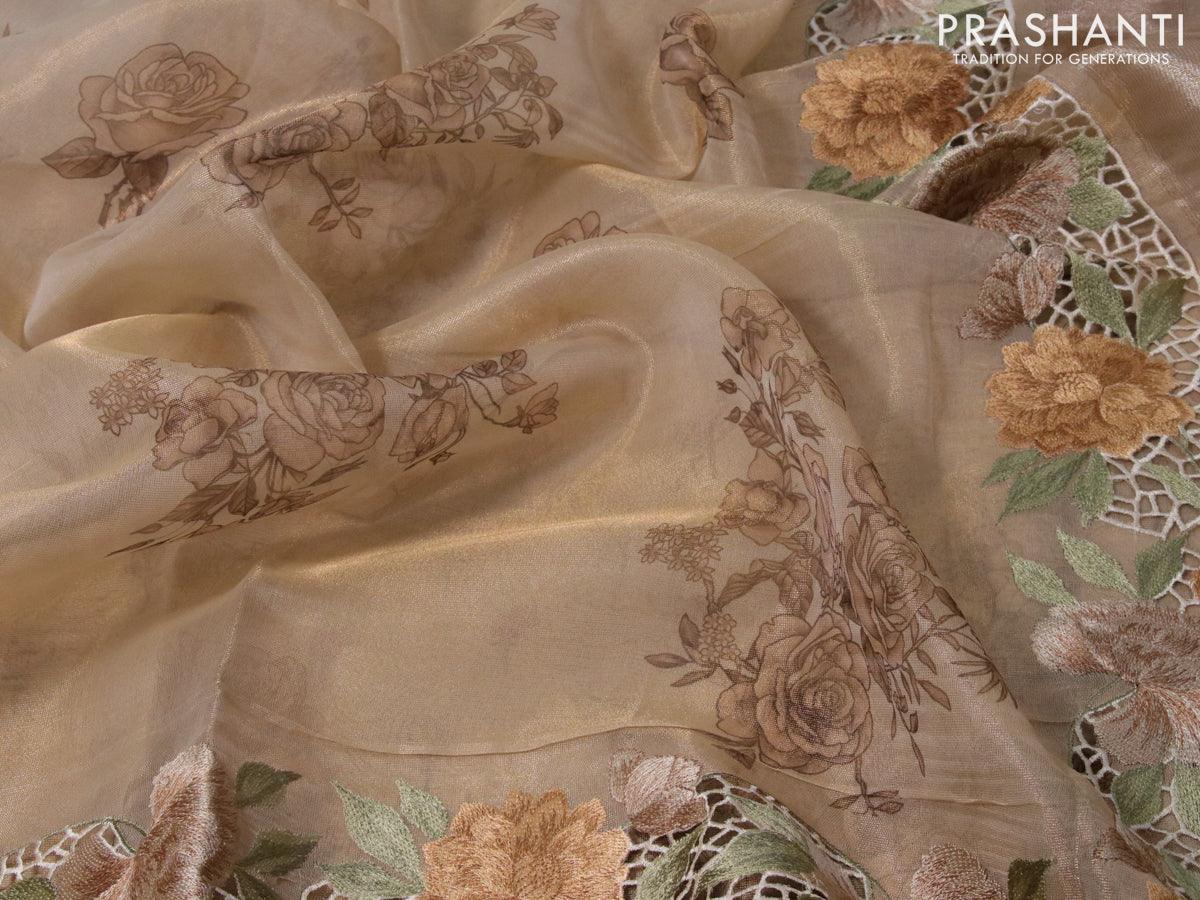 Tissue saree sandal with floral digital prints and embroidery floral design cut work border
