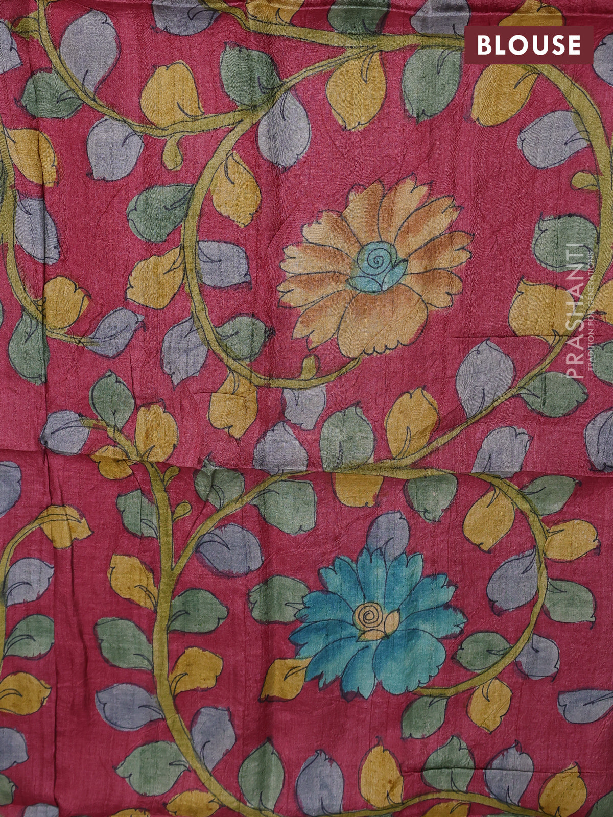 Tussar hand painted blouse bits maroon shade with allover kalamkari prints