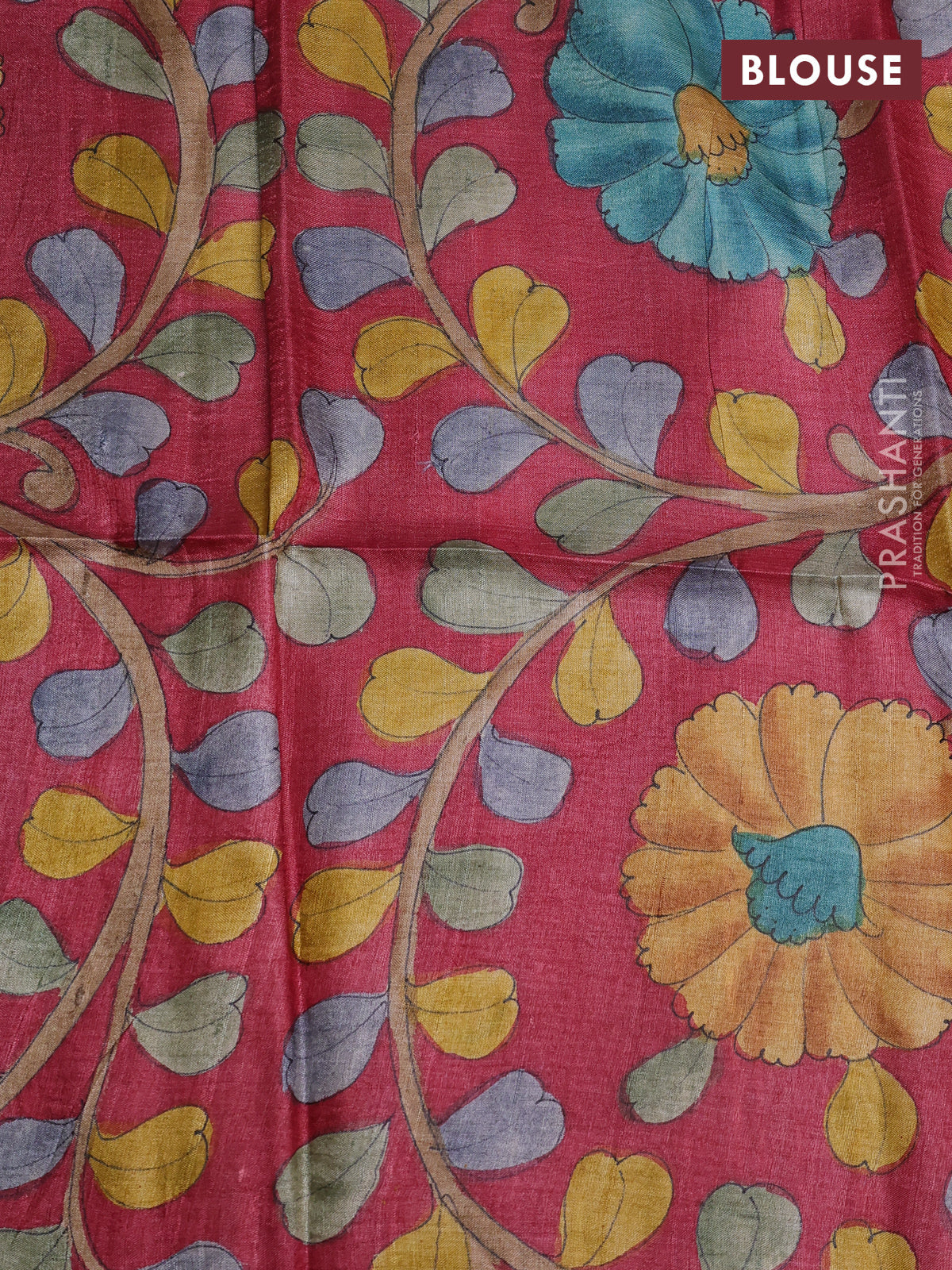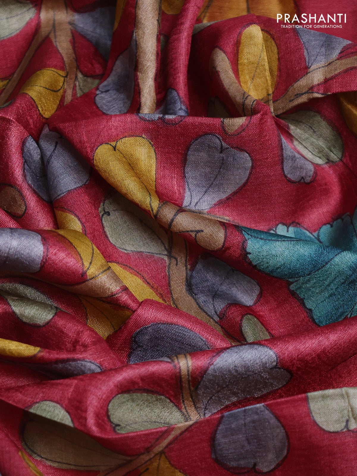 Tussar hand painted blouse bits maroon with allover kalamkari prints