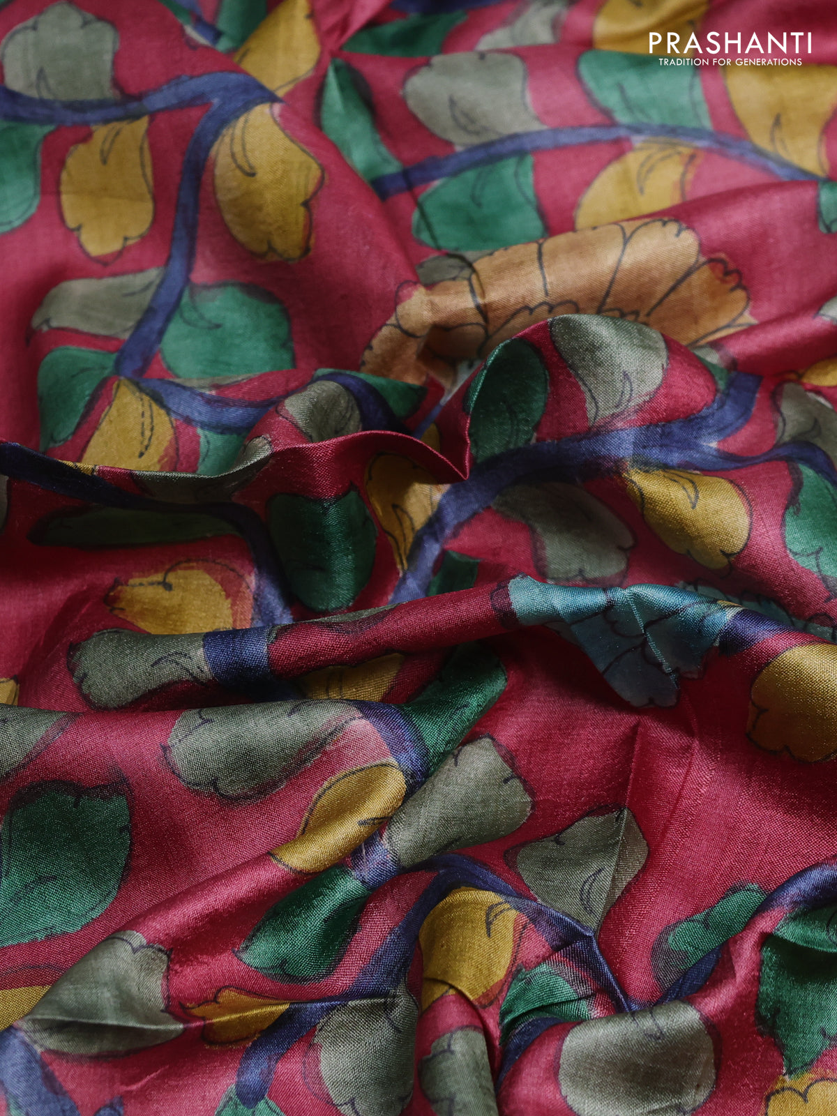 Tussar hand painted blouse bits maroon with allover kalamkari prints