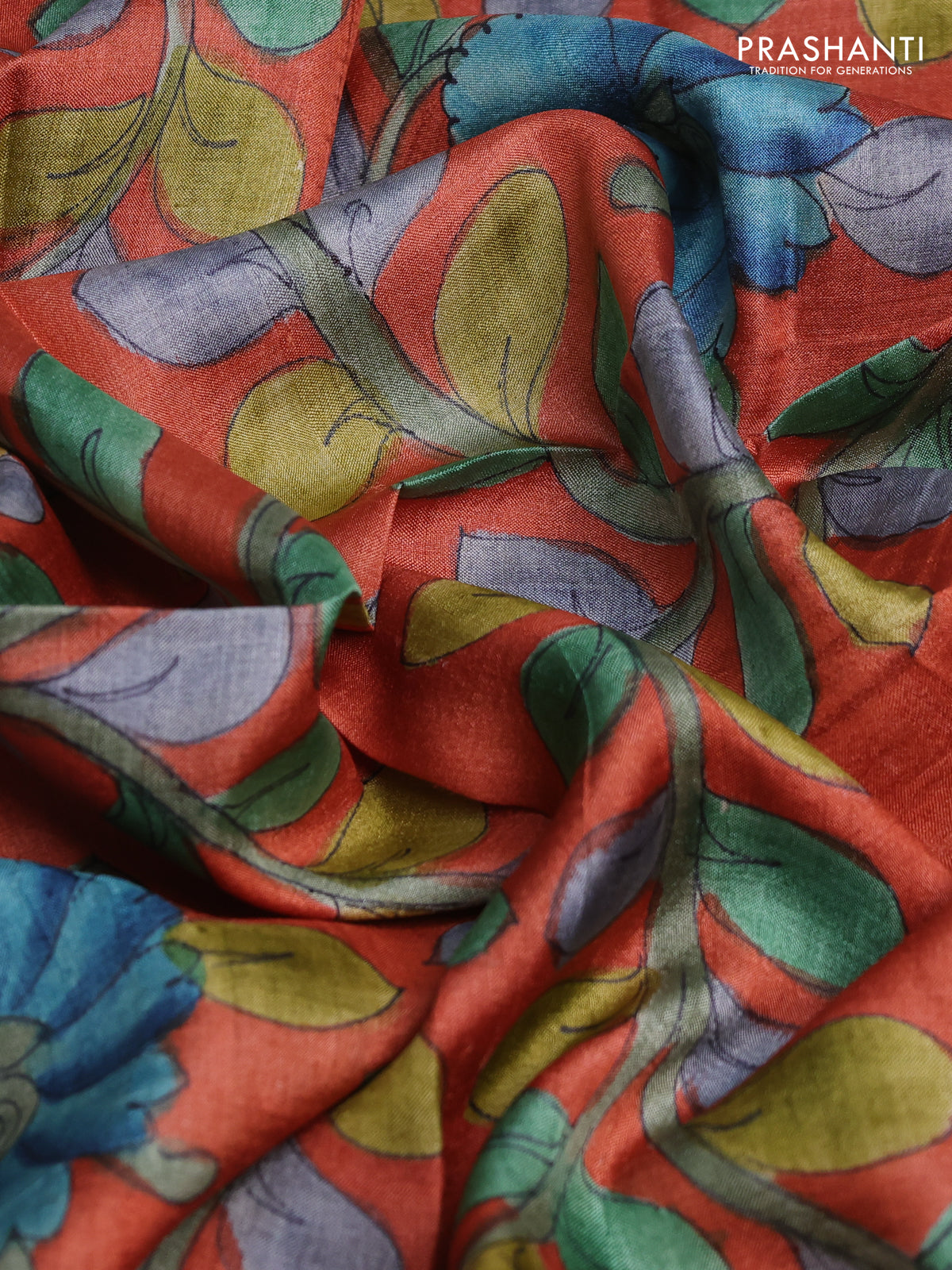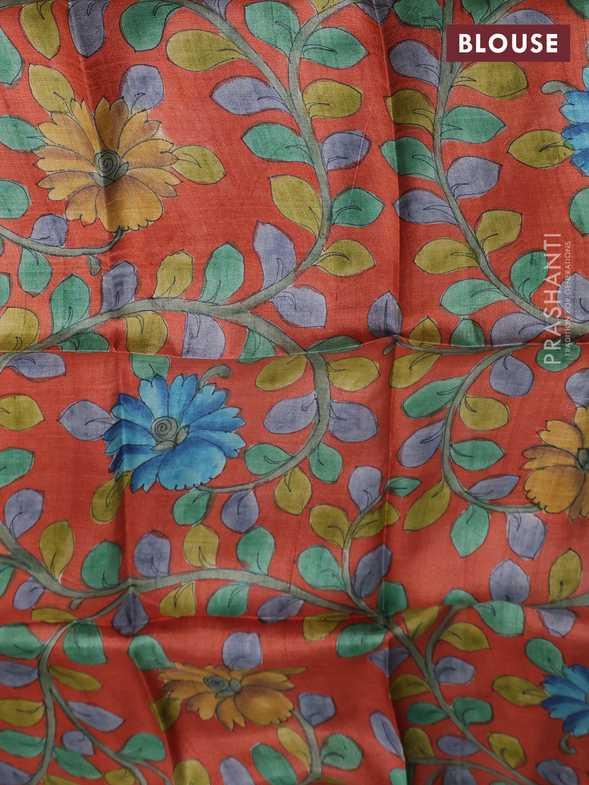 Tussar hand painted blouse bits rustic orange with allover kalamkari prints