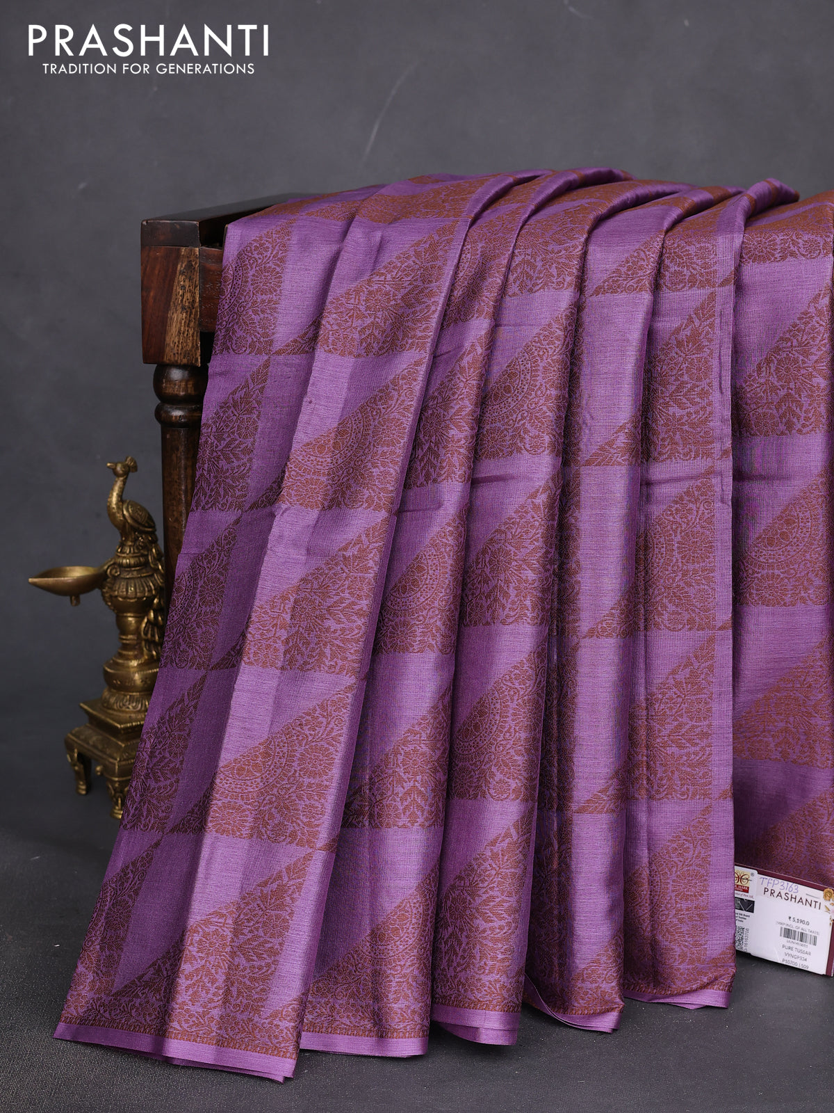 Pure tussar silk saree purple with allover thread weaves in borderless style