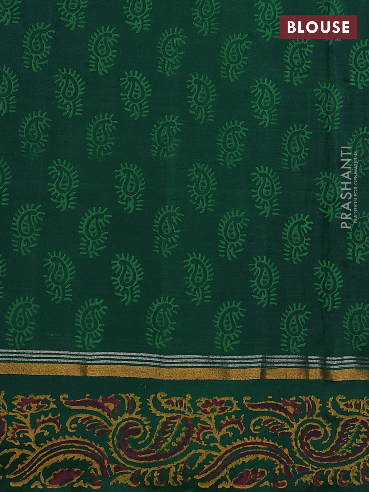 Uppada block printed silk saree dark mustard and green with floral butta prints and zari woven printed border