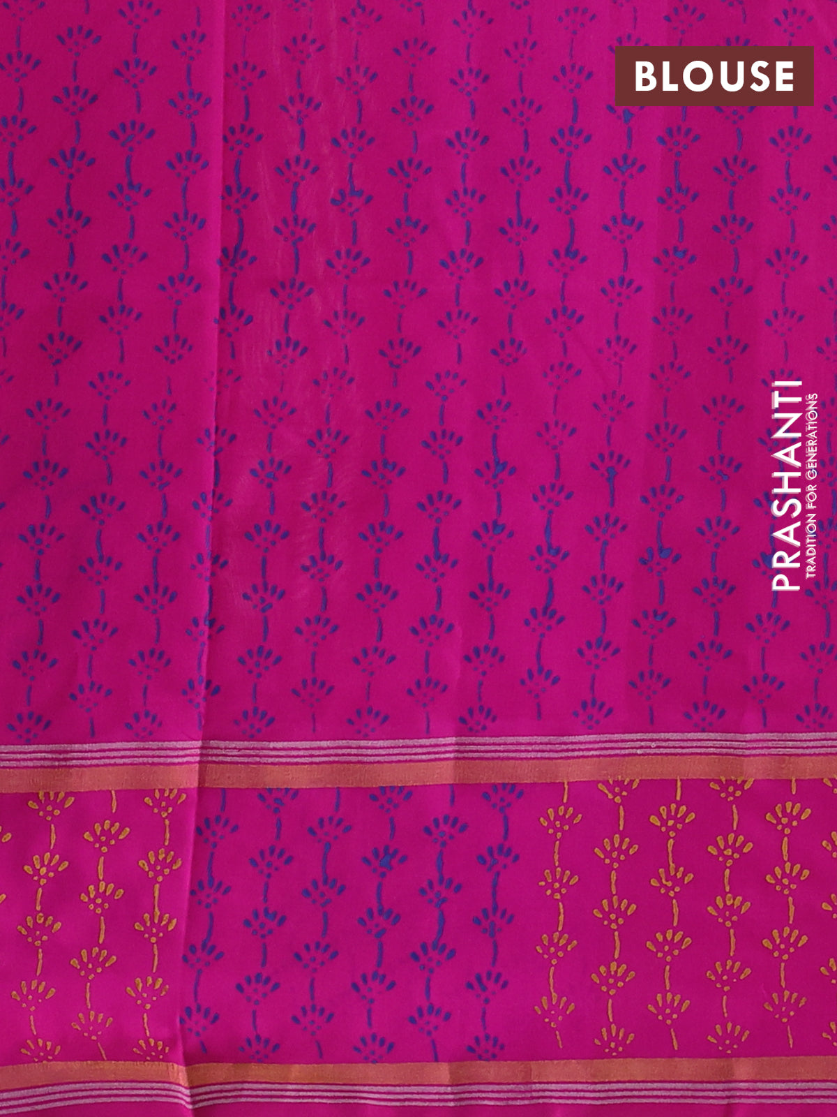Uppada block printed silk saree light pink and pink with butta prints and zari woven printed border