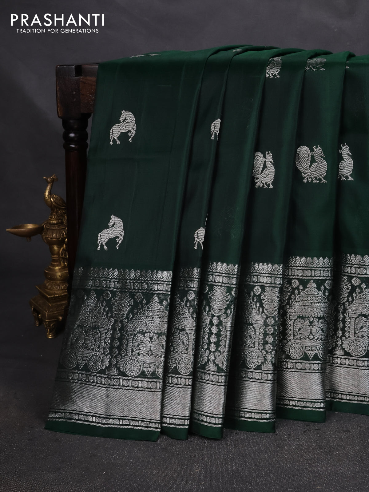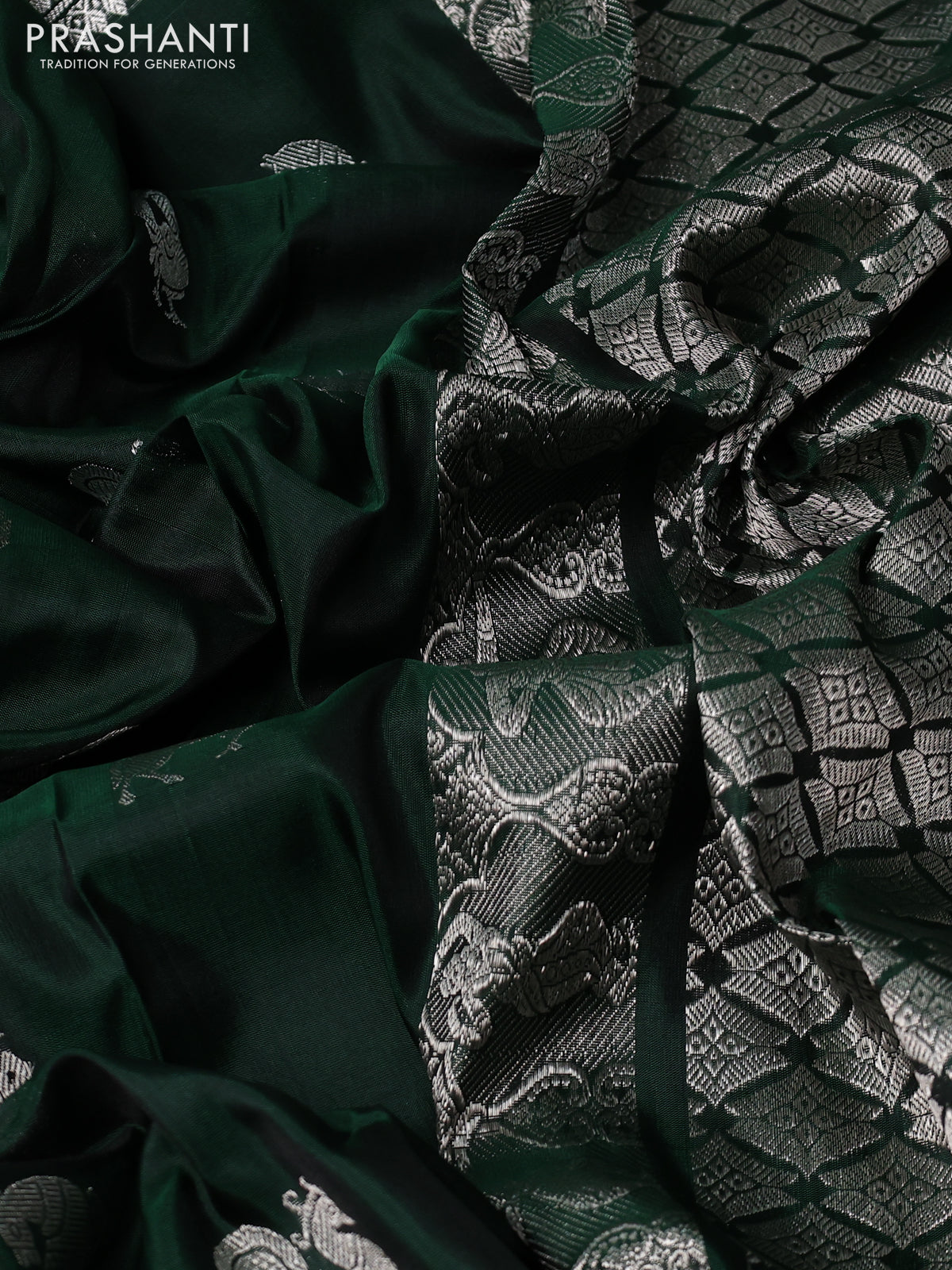 Venkatagiri silk saree green with silver zari woven buttas and long silver zari woven border