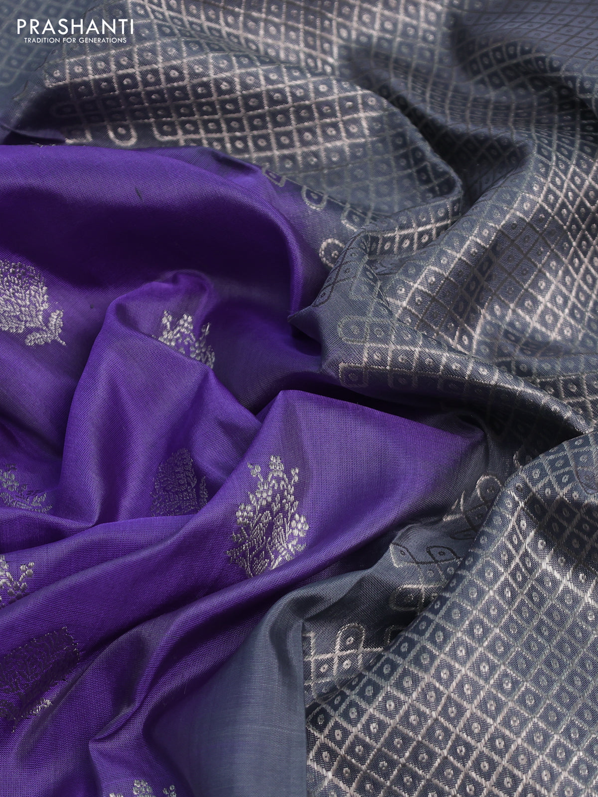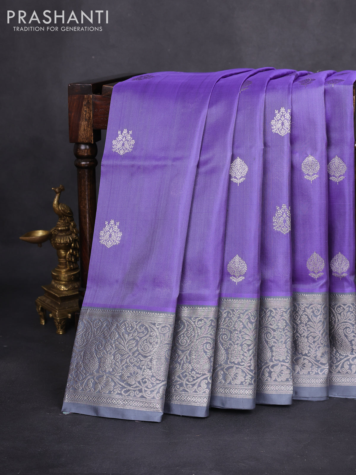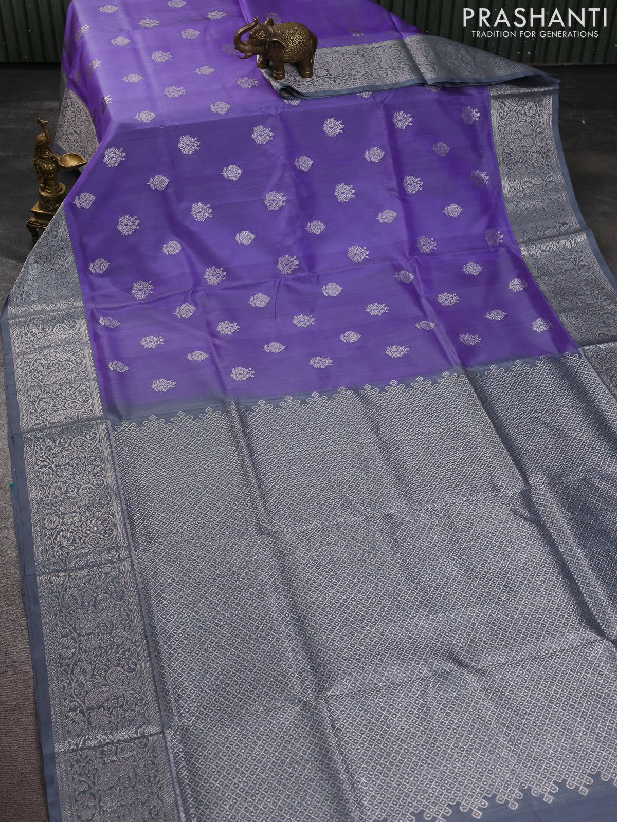 Venkatagiri silk saree lavender and grey with silver zari woven buttas and rich zari woven border