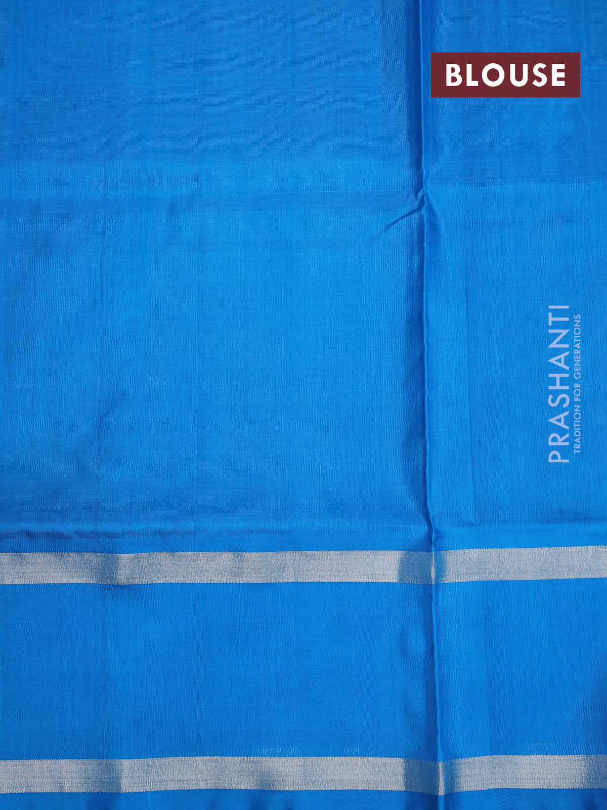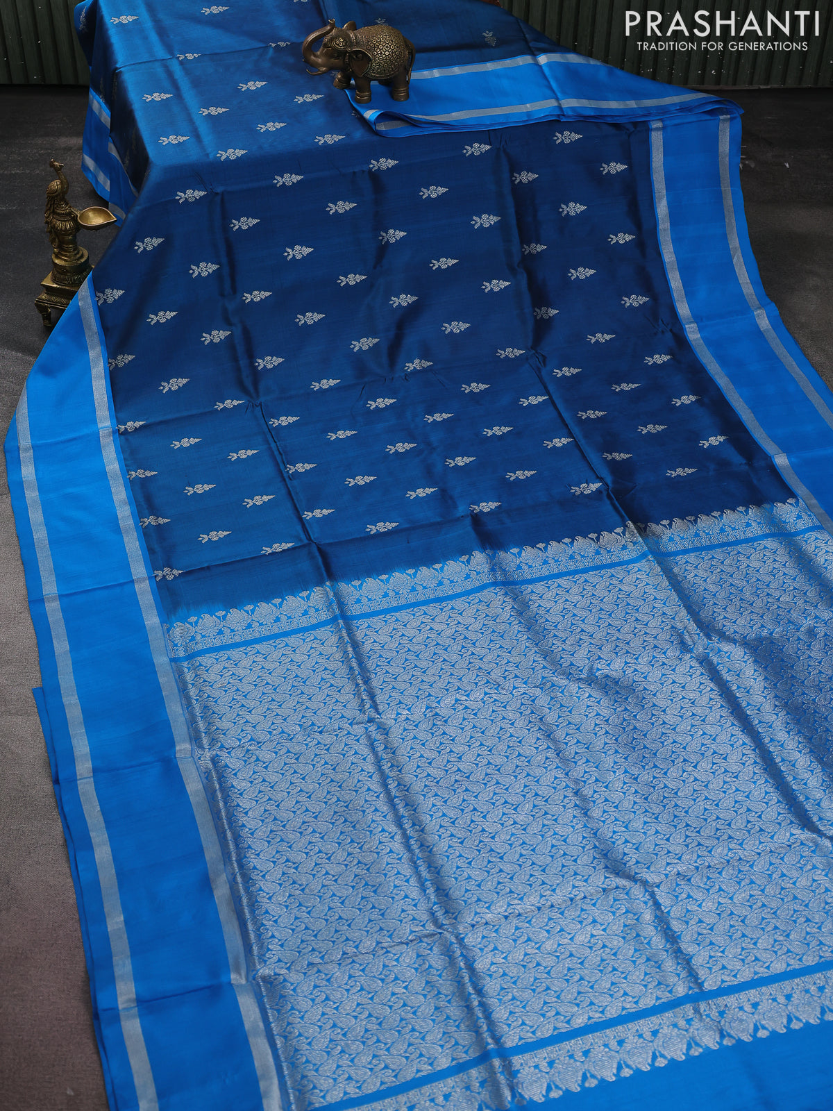 Venkatagiri silk saree peacock blue and cs blue with silver zari woven buttas and rettapet silver zari woven border
