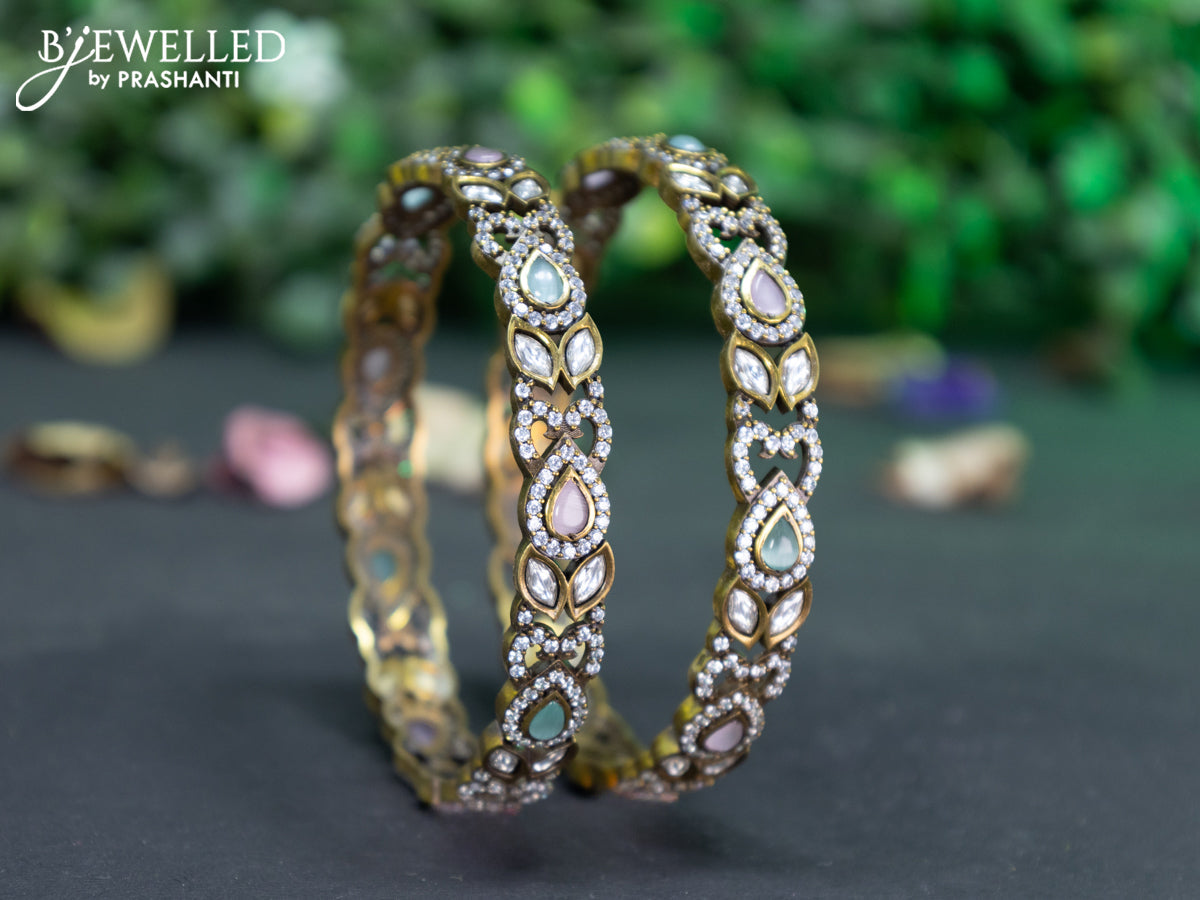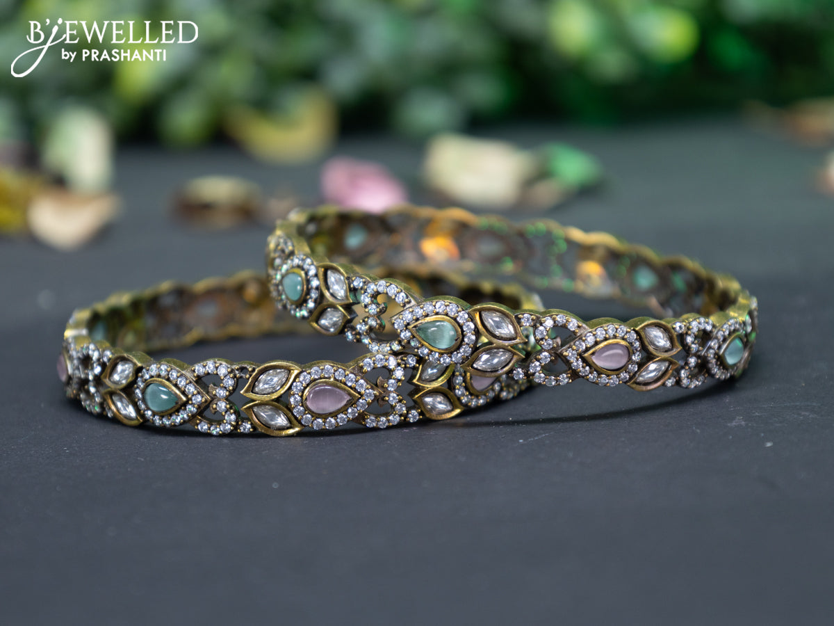 Victorian bangle with mint green & baby pink and cz stones