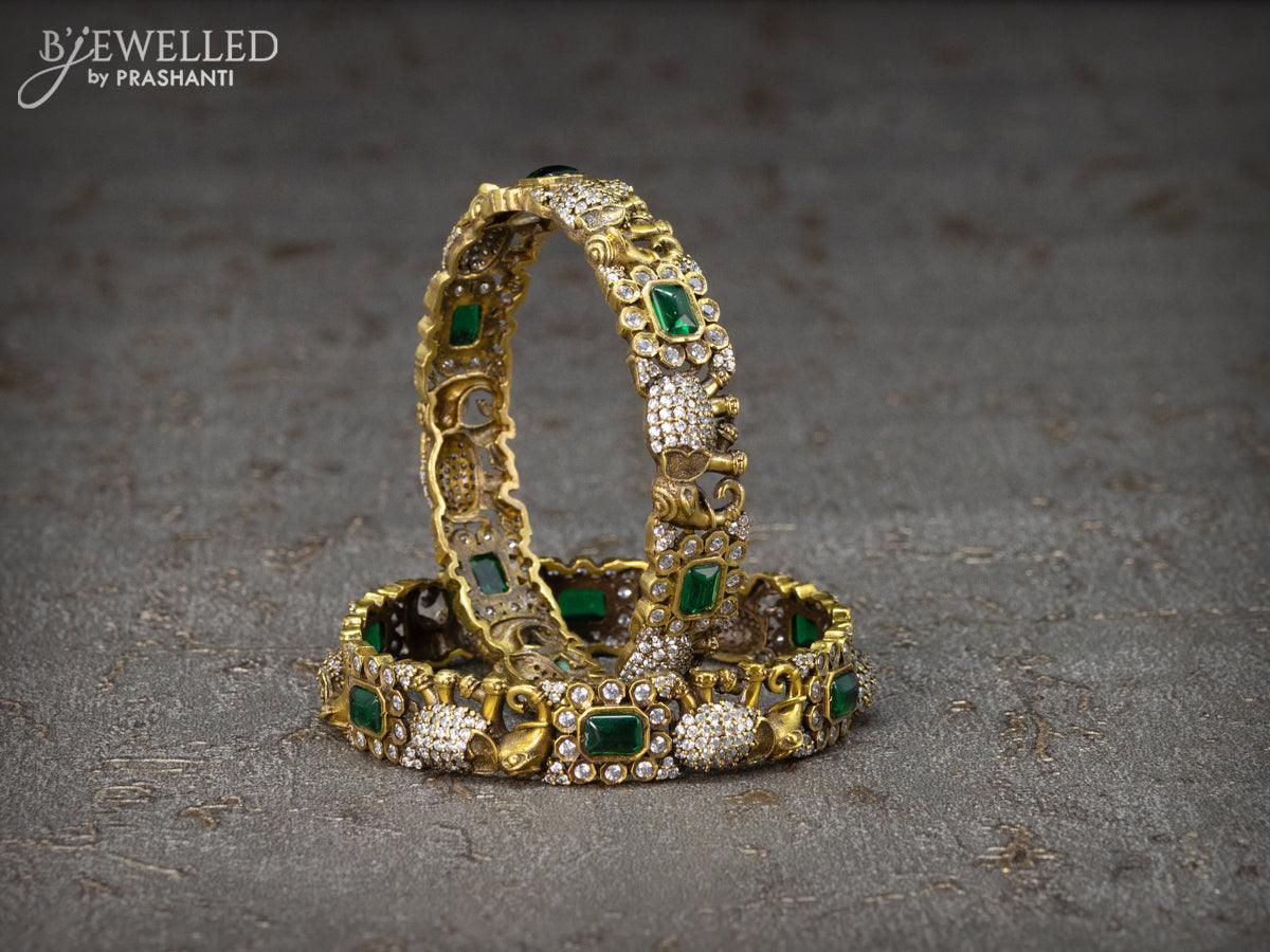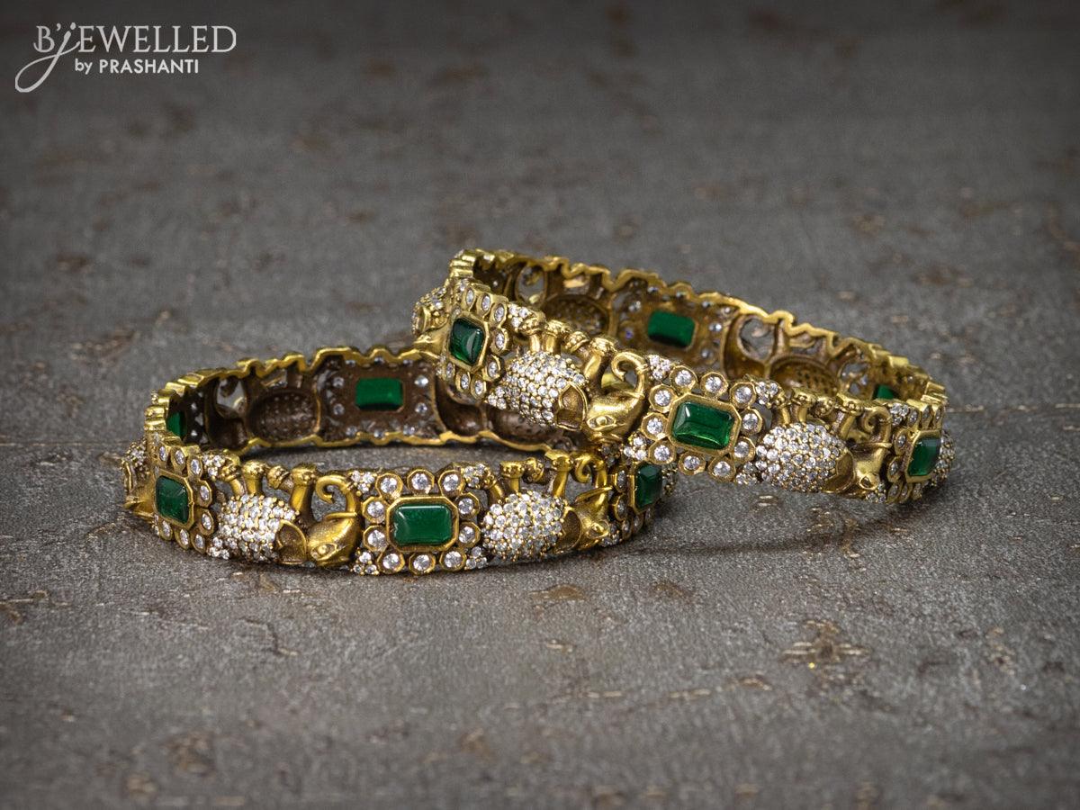 Victorian bangles elephant design with emerald & cz stone