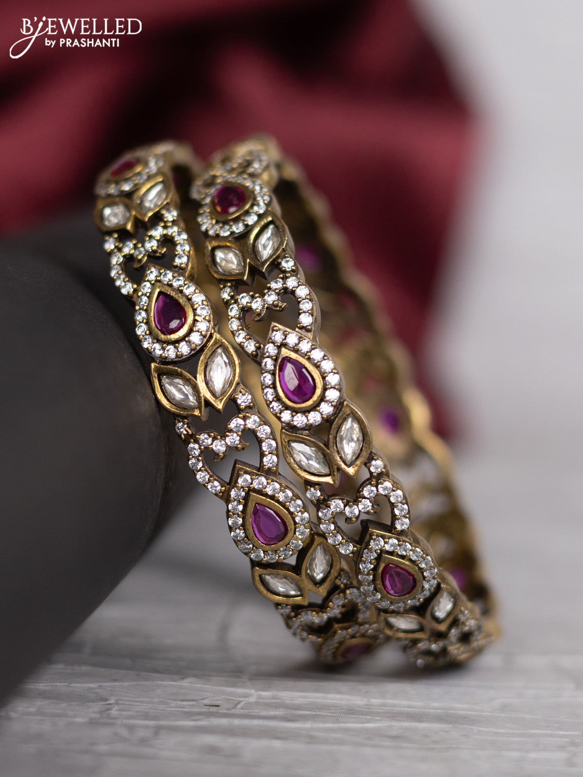 Victorian finish bangle with ruby & kundan and cz stones