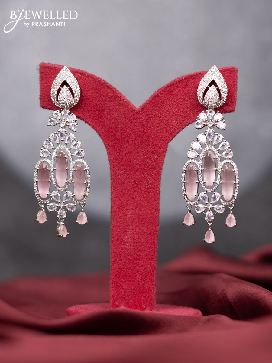 Zircon earring with baby pink & cz stones and hangings