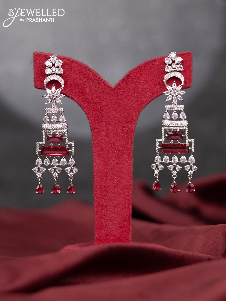 Zircon earring with ruby & cz stones and hangings