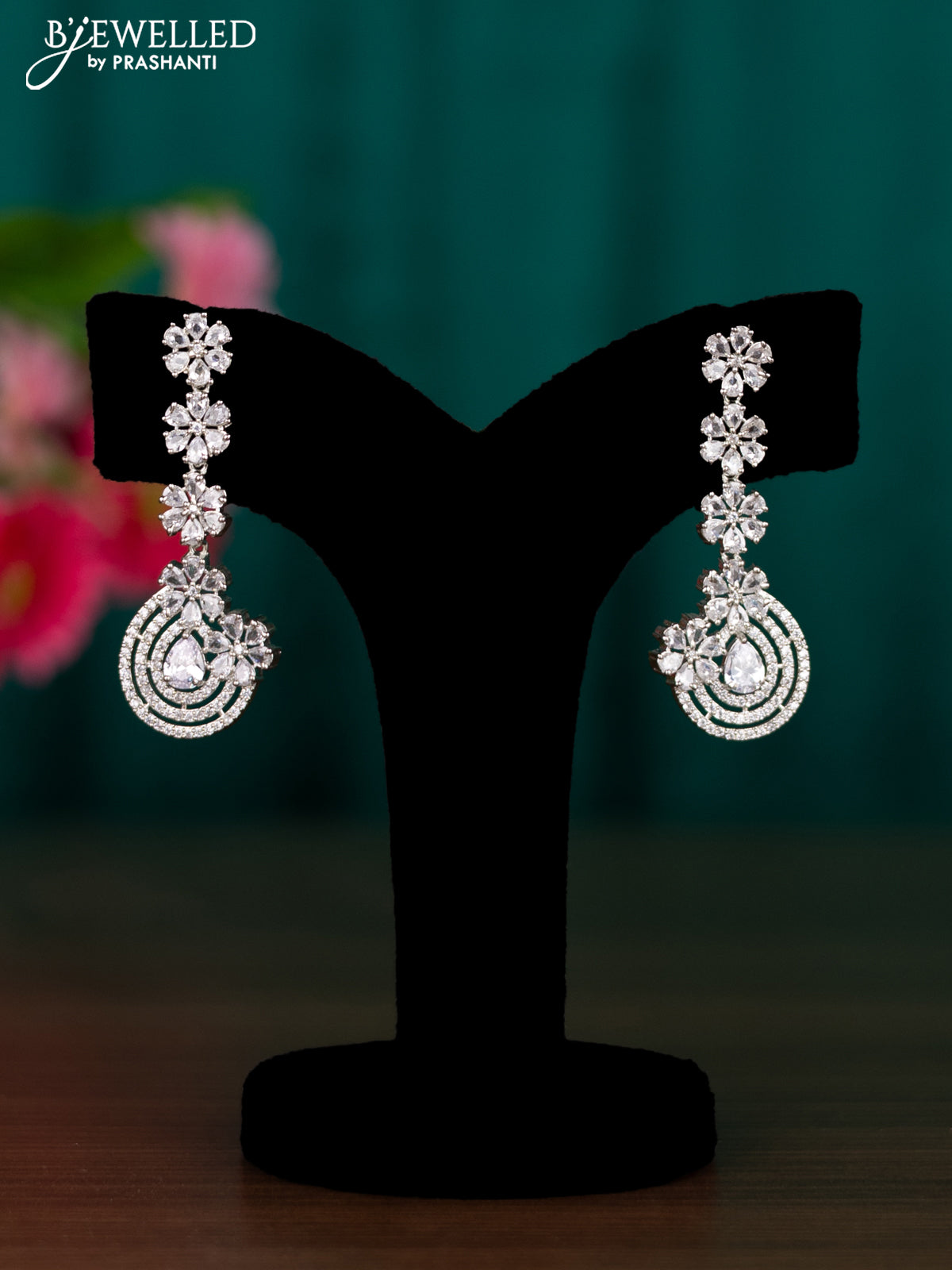 Zircon floral design earrings with cz stones
