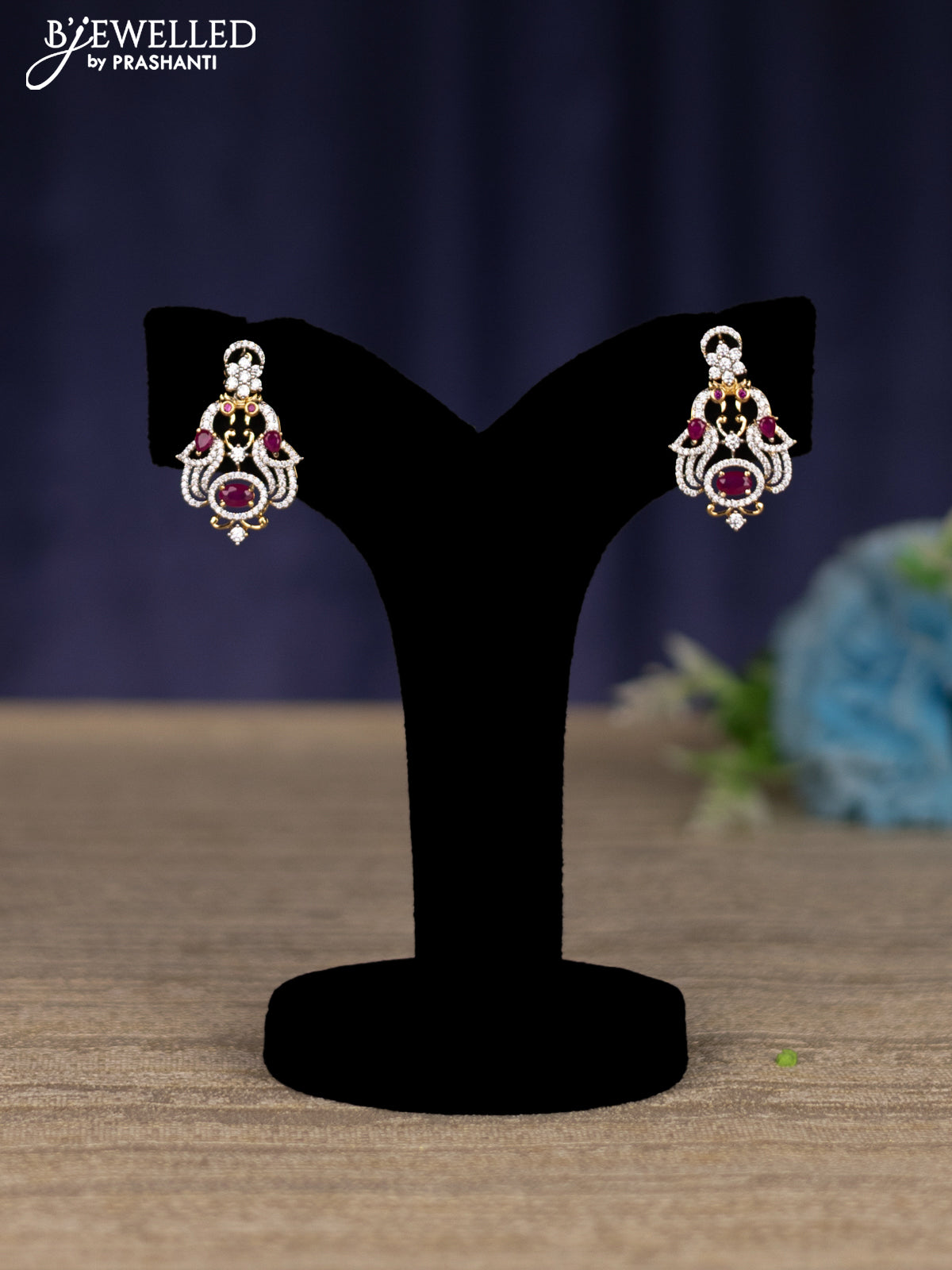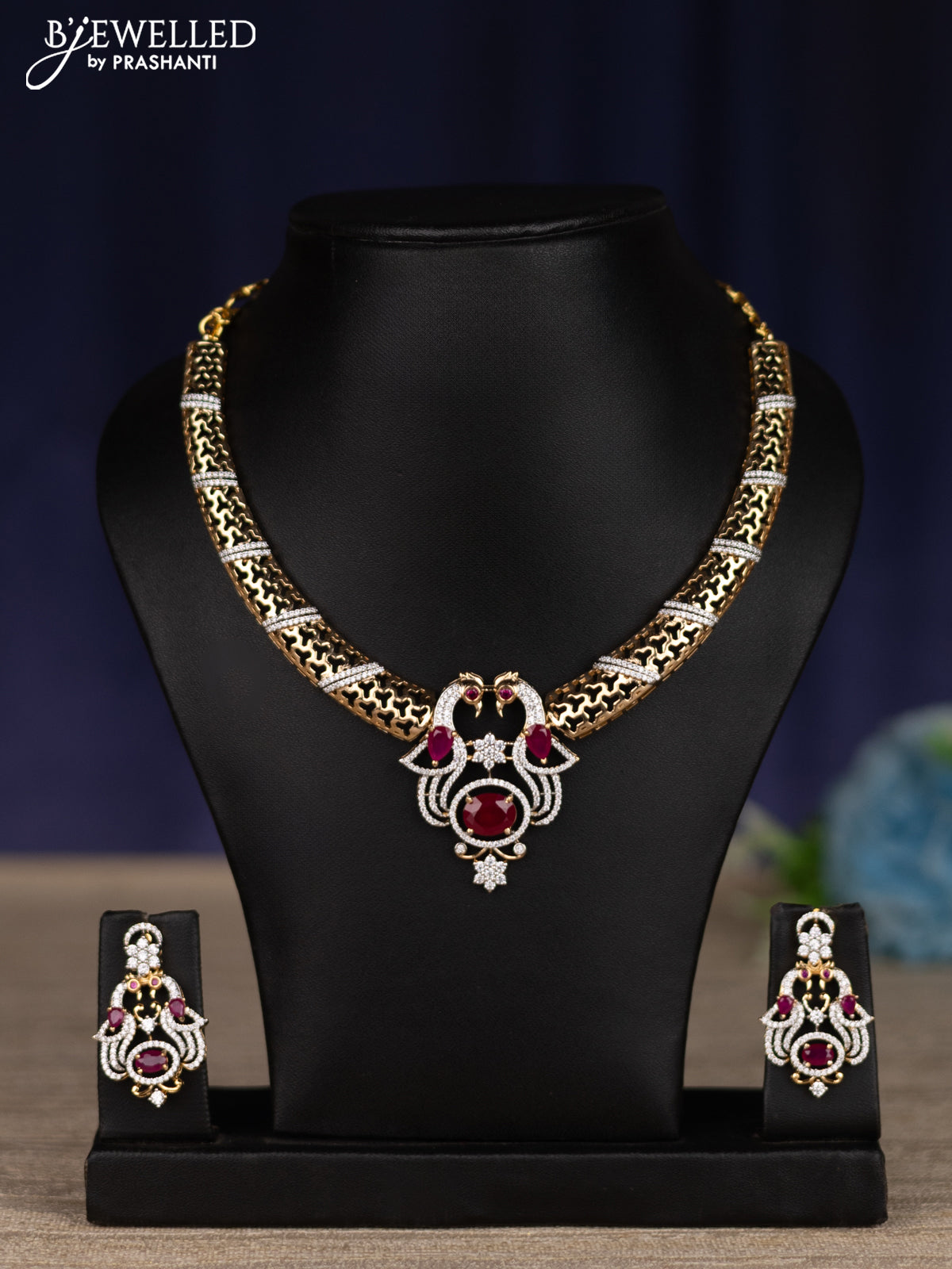 zircon necklace peacock design with ruby and cz stones in gold finish
