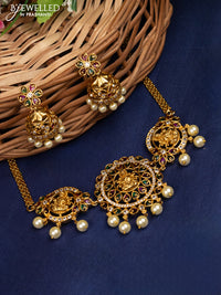 Pearl haaram lakshmi pendant with kemp & cz sto...