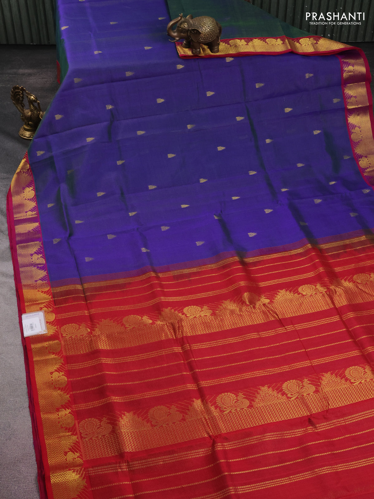 10 yards silk cotton saree dual shade of blue and red with allover vairaosi pattern & zari buttas and zari woven border