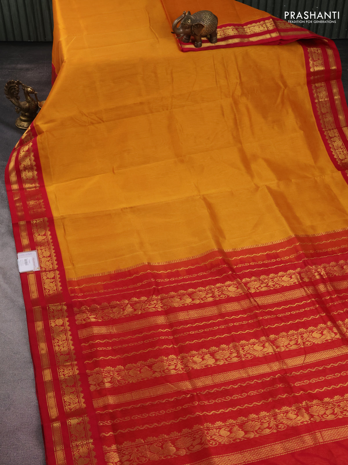 10 yards silk cotton saree mustard shade and red with plain body and zari woven border